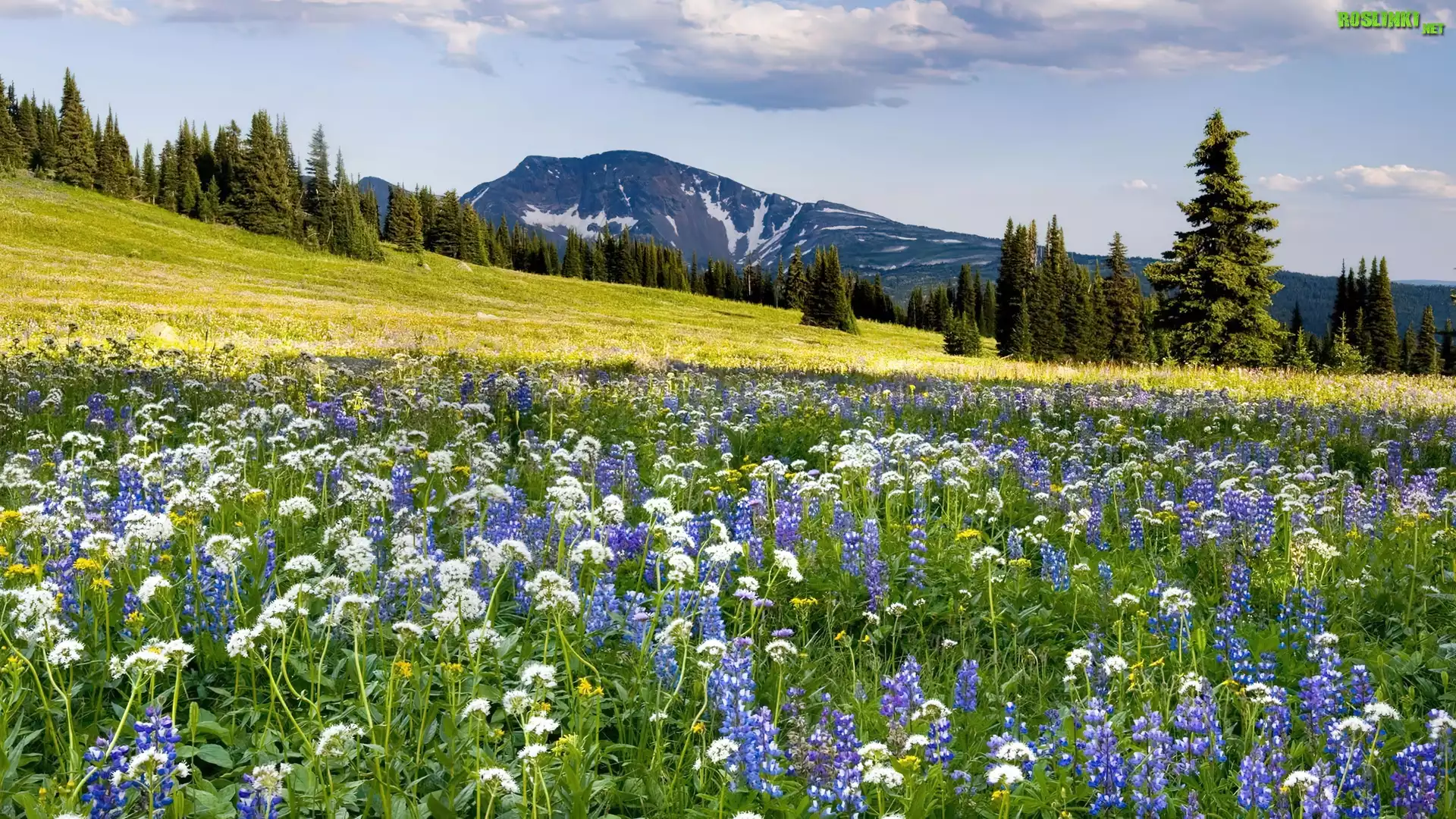 Rośliny: Łąka, Kwiaty, Drzewa, Góry