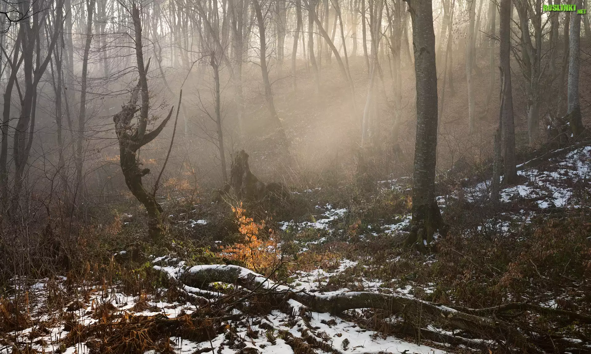 Rośliny: Śnieg, Las, Drzewa, Mgła