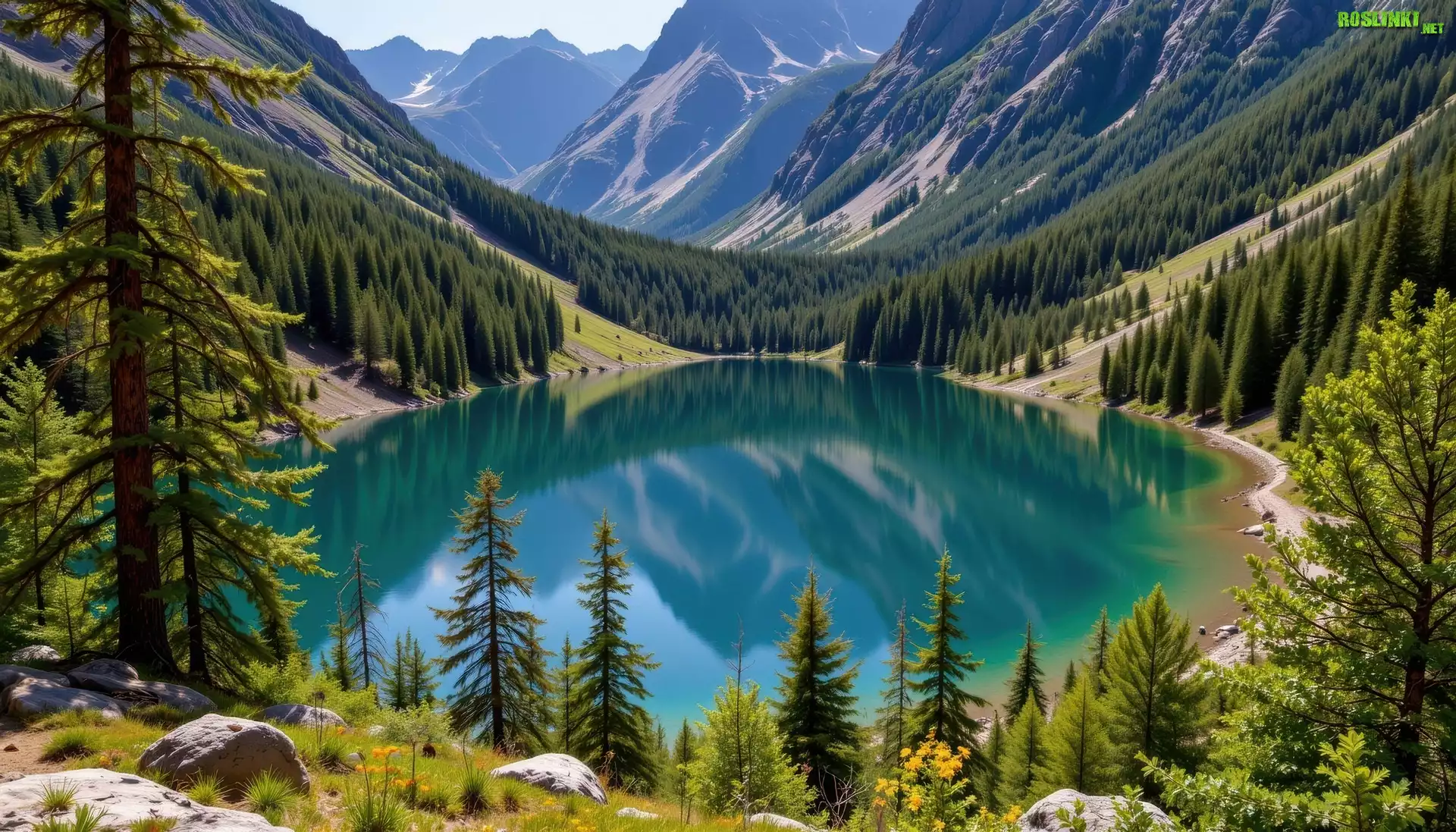 Rośliny: Jezioro, Drzewa, Lasy, Góry, Grafika