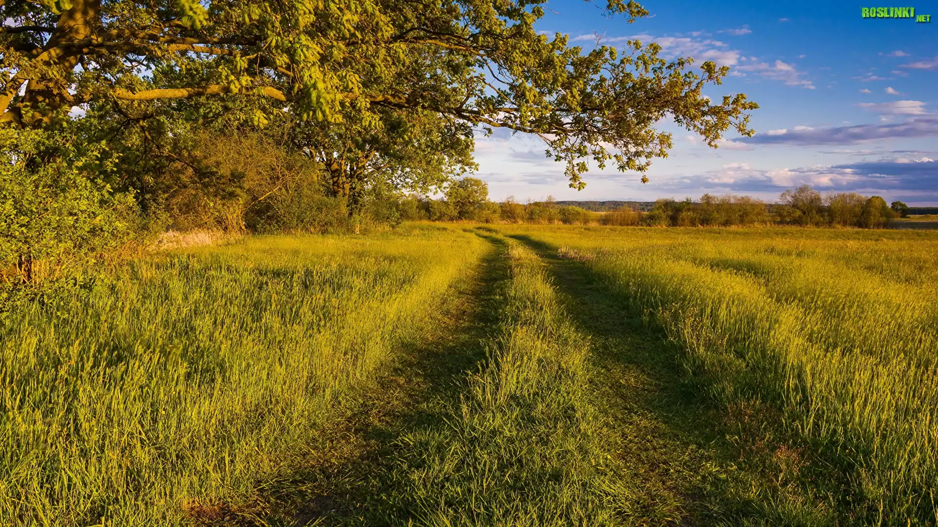 Rośliny: Droga, Łąka, Trawa, Drzewa, Gałęzie, Lato
