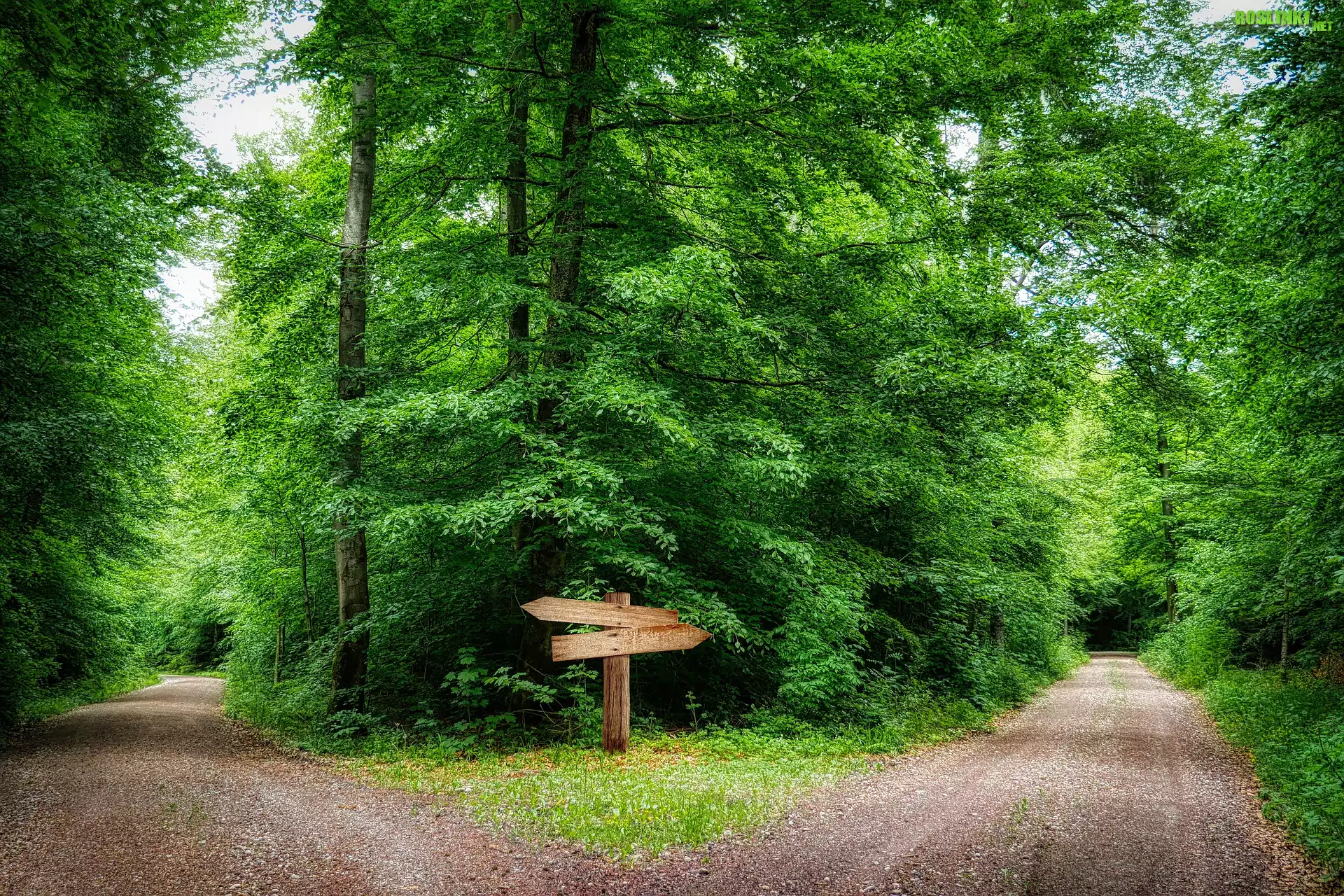 Rośliny: Las, Drogi, Zielone, Drzewa, Drogowskaz, Lato