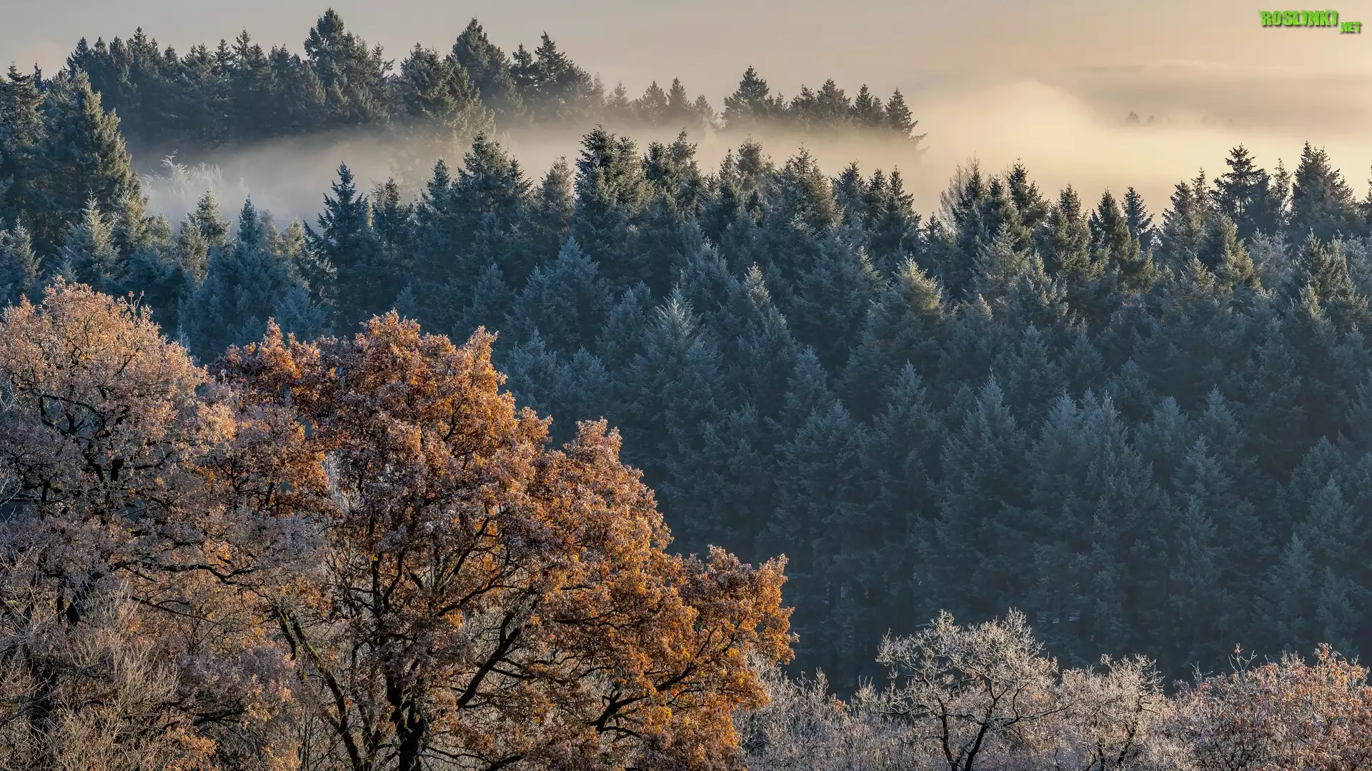 Rośliny: Las, Drzewa, Liściaste, Iglaste, Mgła