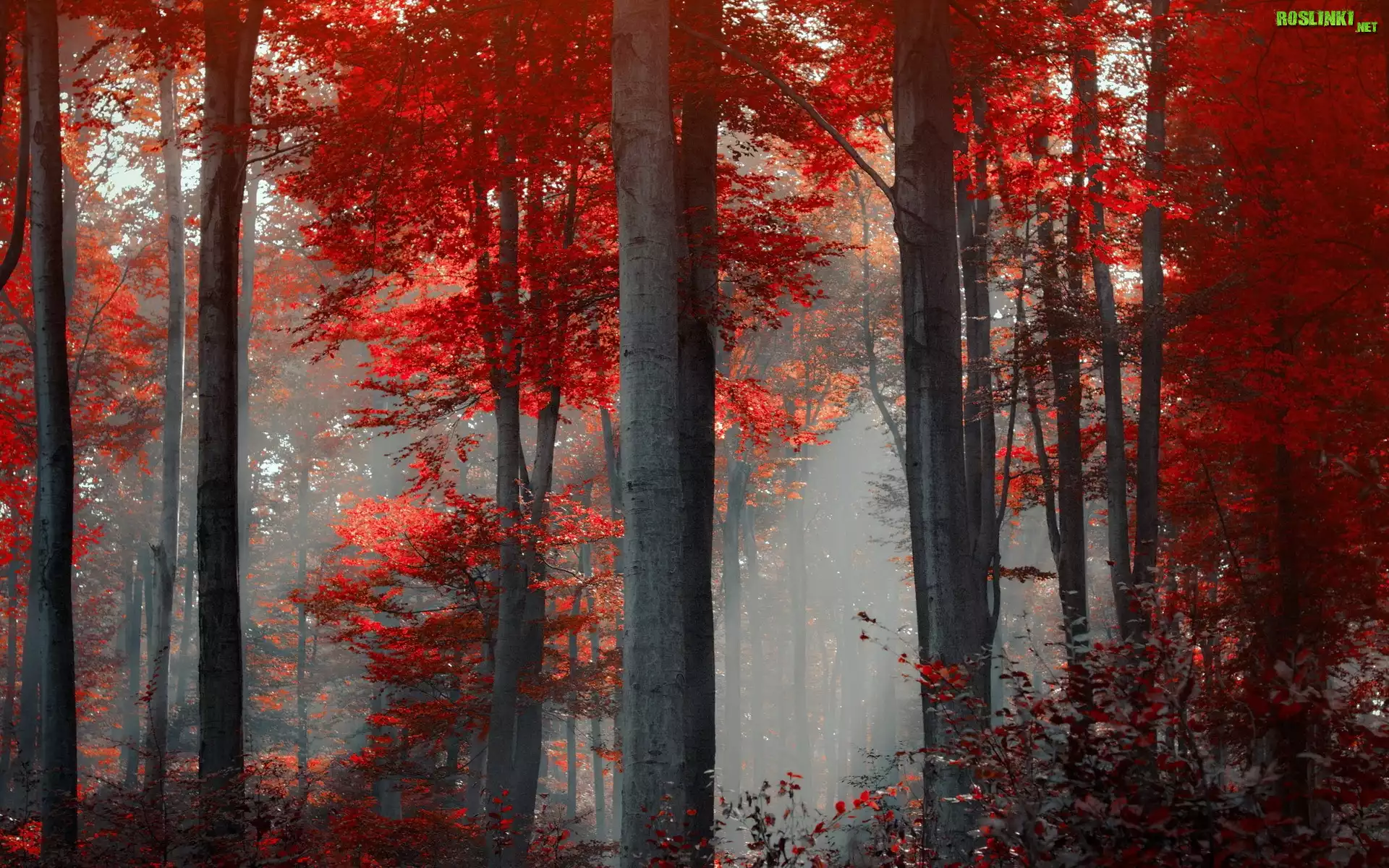 Rośliny: Drzewa, Las, Mgła, Jesień