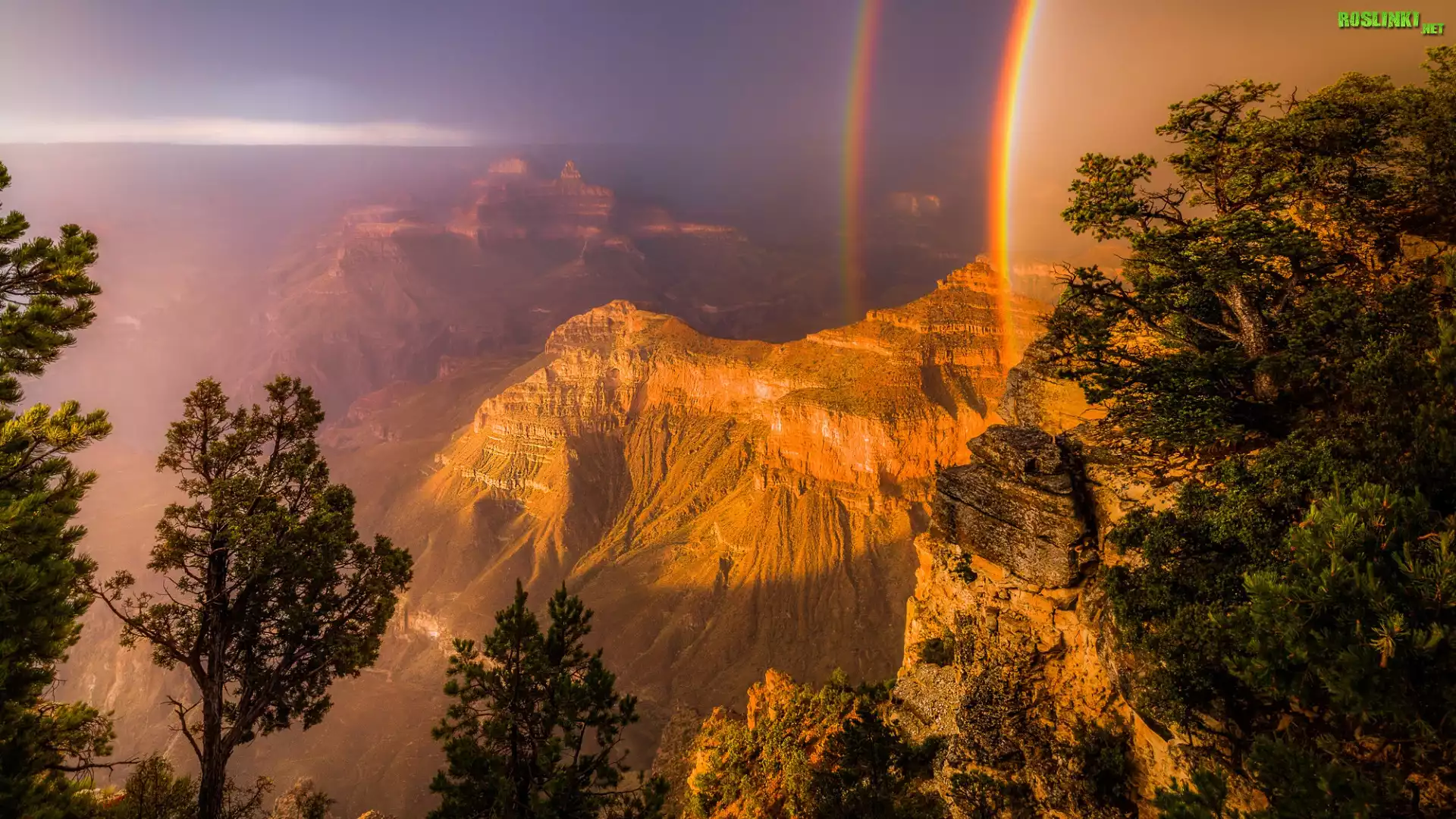 Stany Zjednoczone, Arizona, Park Narodowy, Wielki Kanion Kolorado, Tęcza, Drzewa