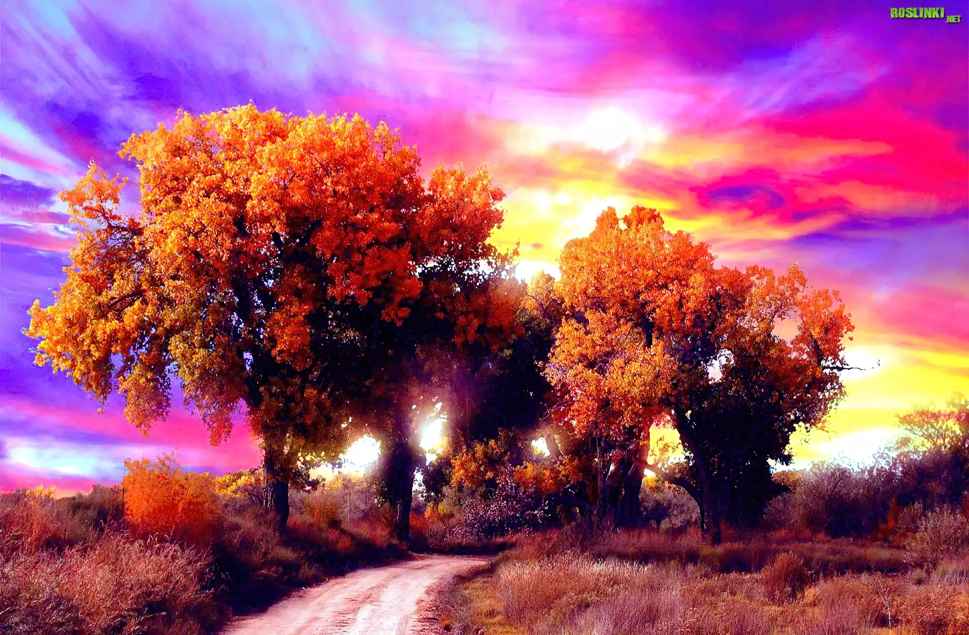 Rośliny: Drzewa, Kolorowe, Niebo, Jesień