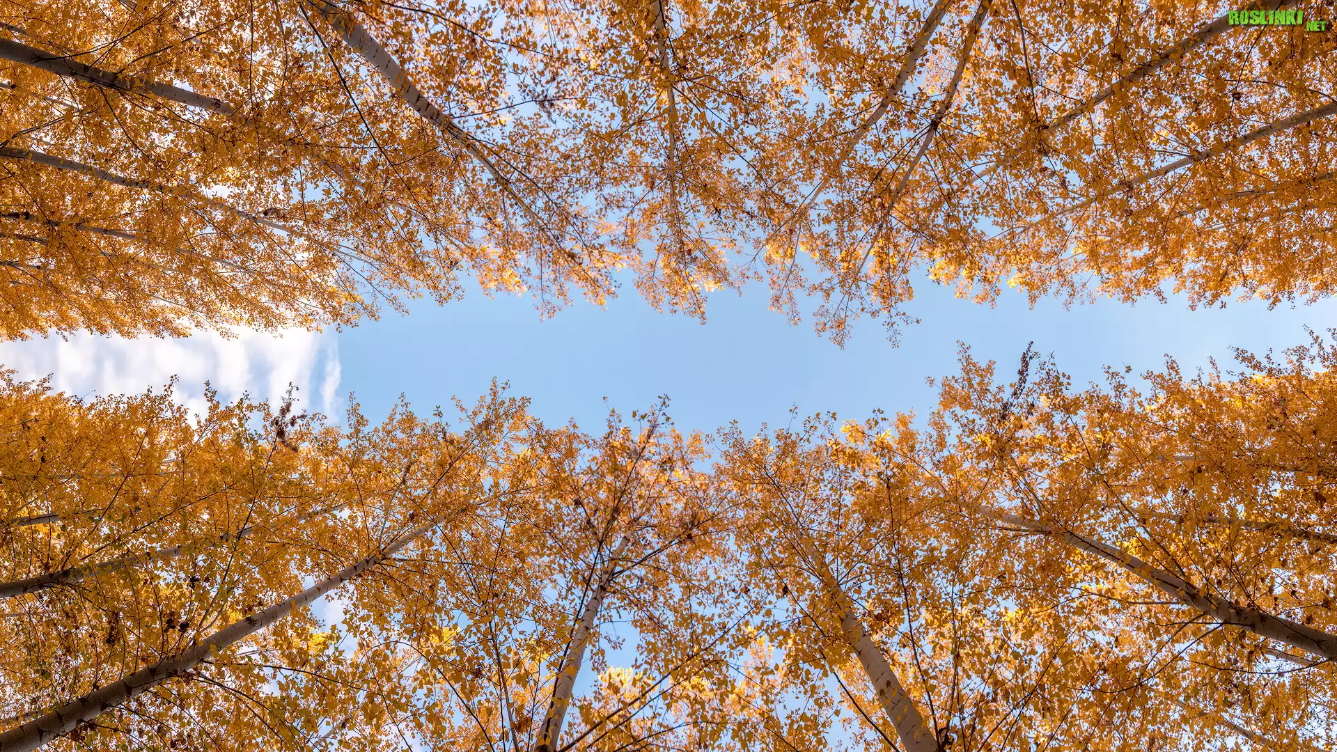 Rośliny: Drzewa, Topole osikowe, Niebo, Jesień