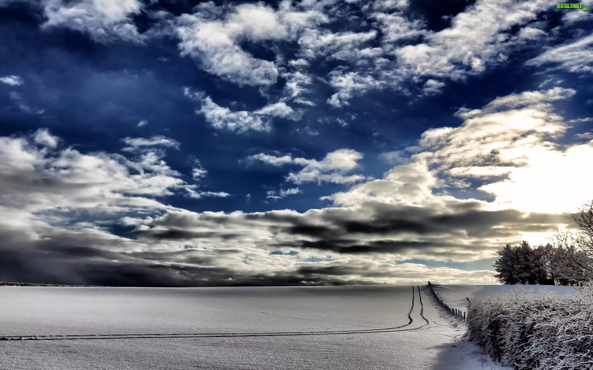 Rośliny: Drzewa, Chmury, Śnieg, Zima