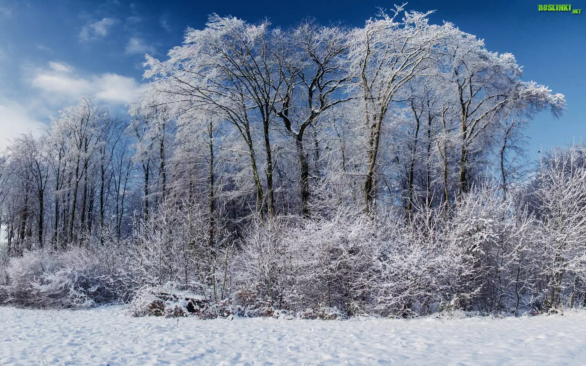 Rośliny: Drzewa, Krzewy, Śnieg, Zima