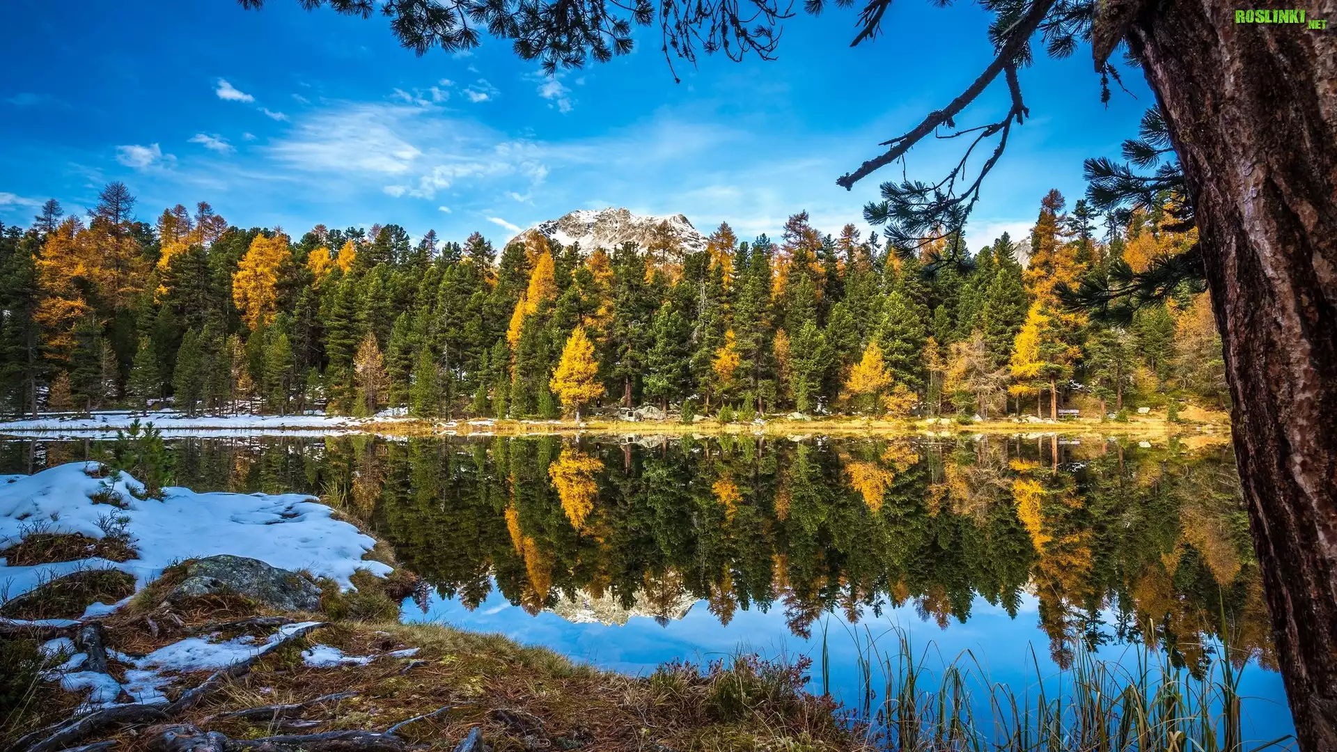 Rośliny: Drzewa, Rzeka, Śnieg, Odbicie