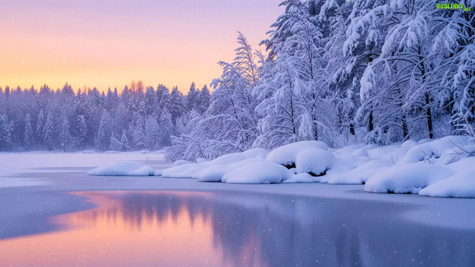 Rośliny: Zima, Rzeka, Ośnieżone, Drzewa, Zachód słońca, Zaspy