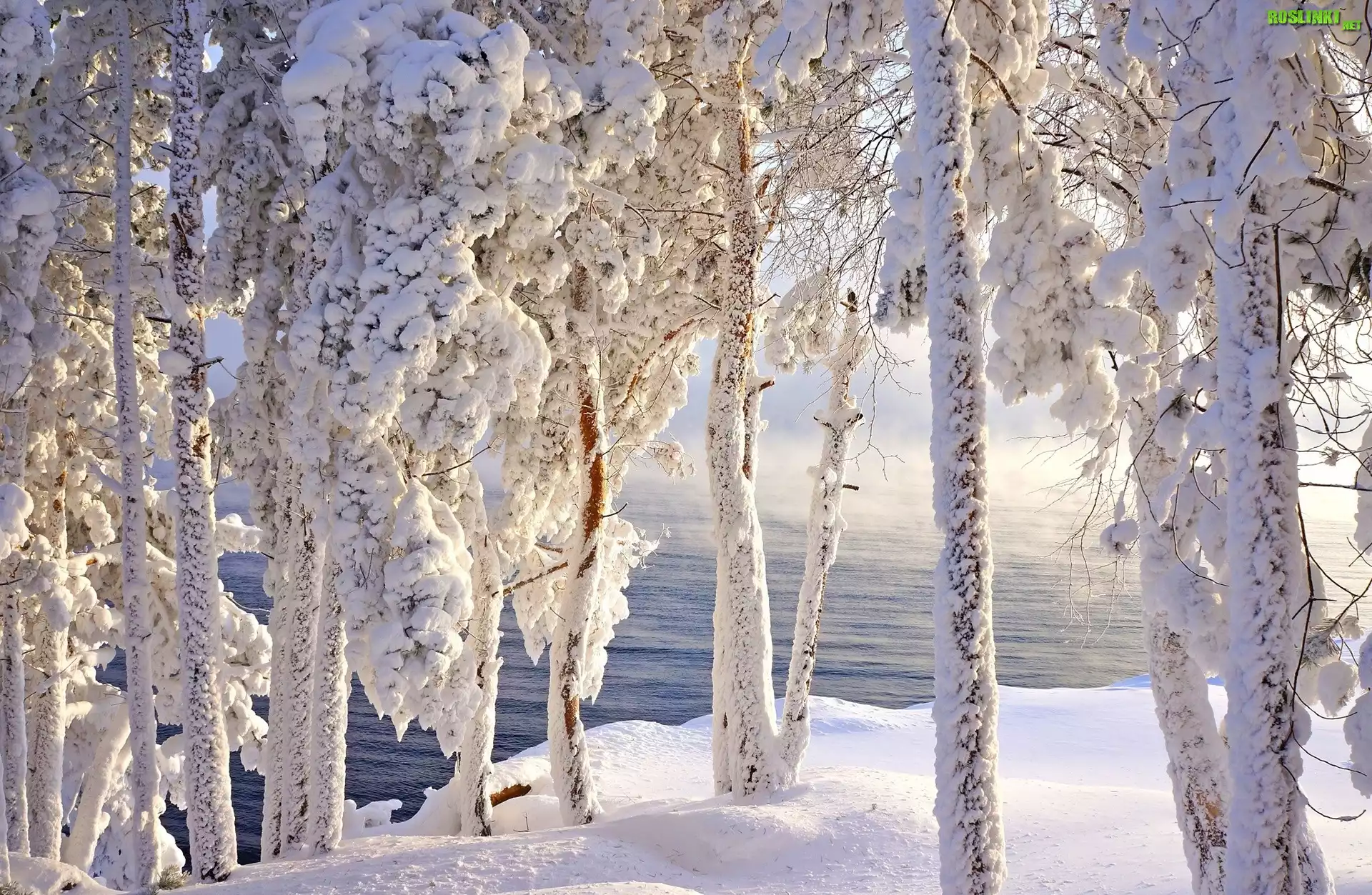 Rośliny: Ośnieżone, Drzewa, Woda