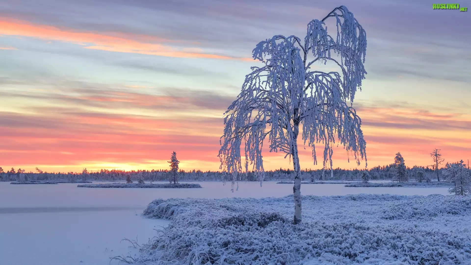 Rośliny: Zima, Drzewa, Oszronione, Niebo, Kolorowe
