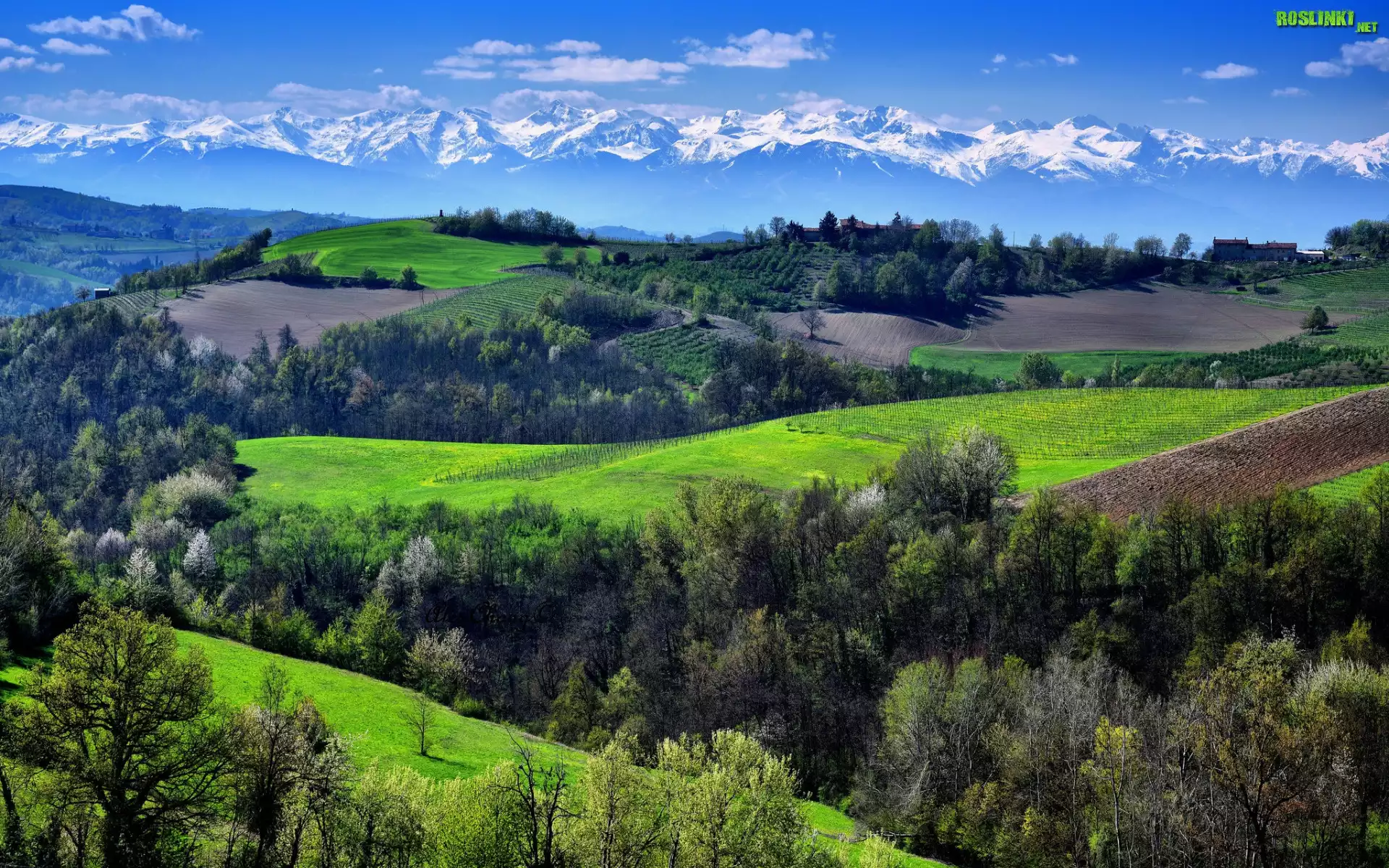 Rośliny: Góry, Wzgórza, Winnice, Drzewa, Wiosna, Pola