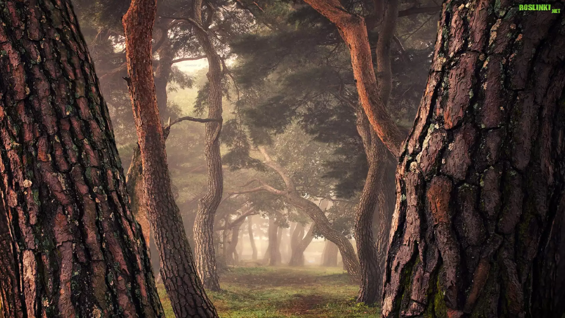 Rośliny: Drzewa, Sosny, Las, Poranek, Mgła