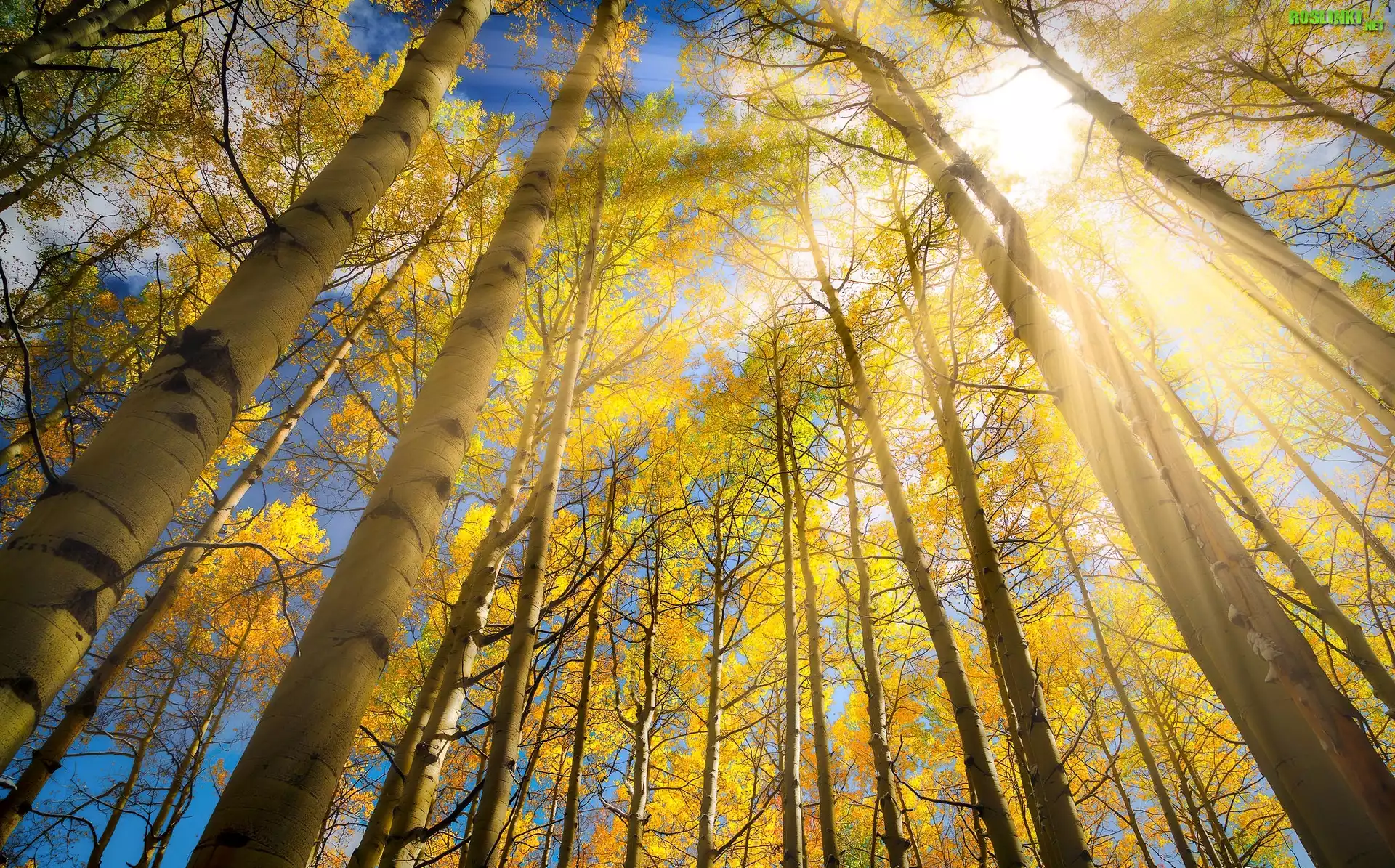 Rośliny: Drzewa, Brzozy, Promienie słońca