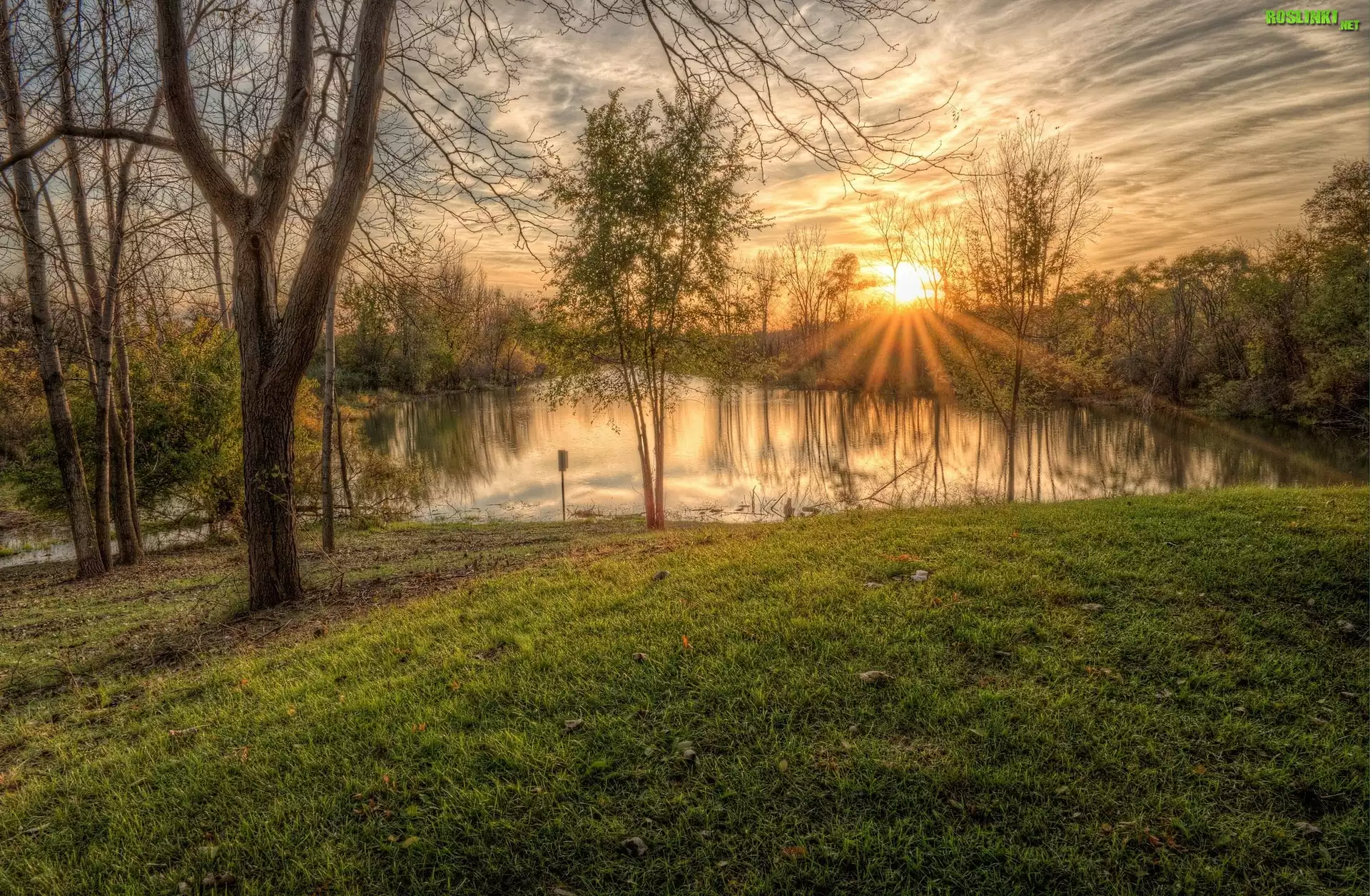 Rośliny: Drzewa, Jezioro, Promienie słońca