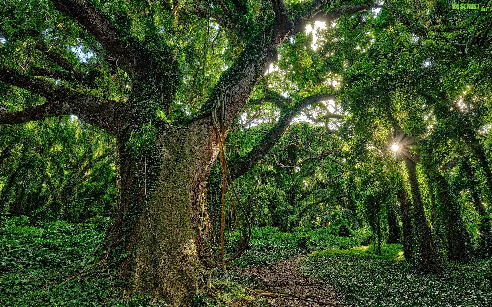 Rośliny: Las, Drzewa, Promienie słońca, Ścieżka
