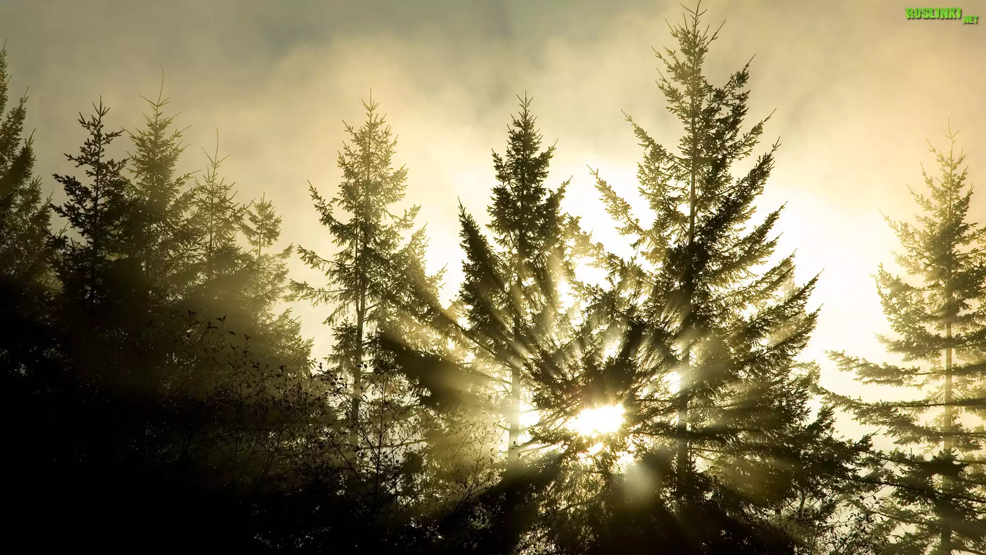 Rośliny: Drzewa, Świerki, Promienie, Słońca