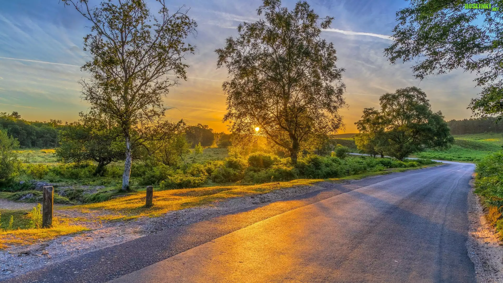 Rośliny: Drzewa, Droga, Zakręt, Promienie słońca