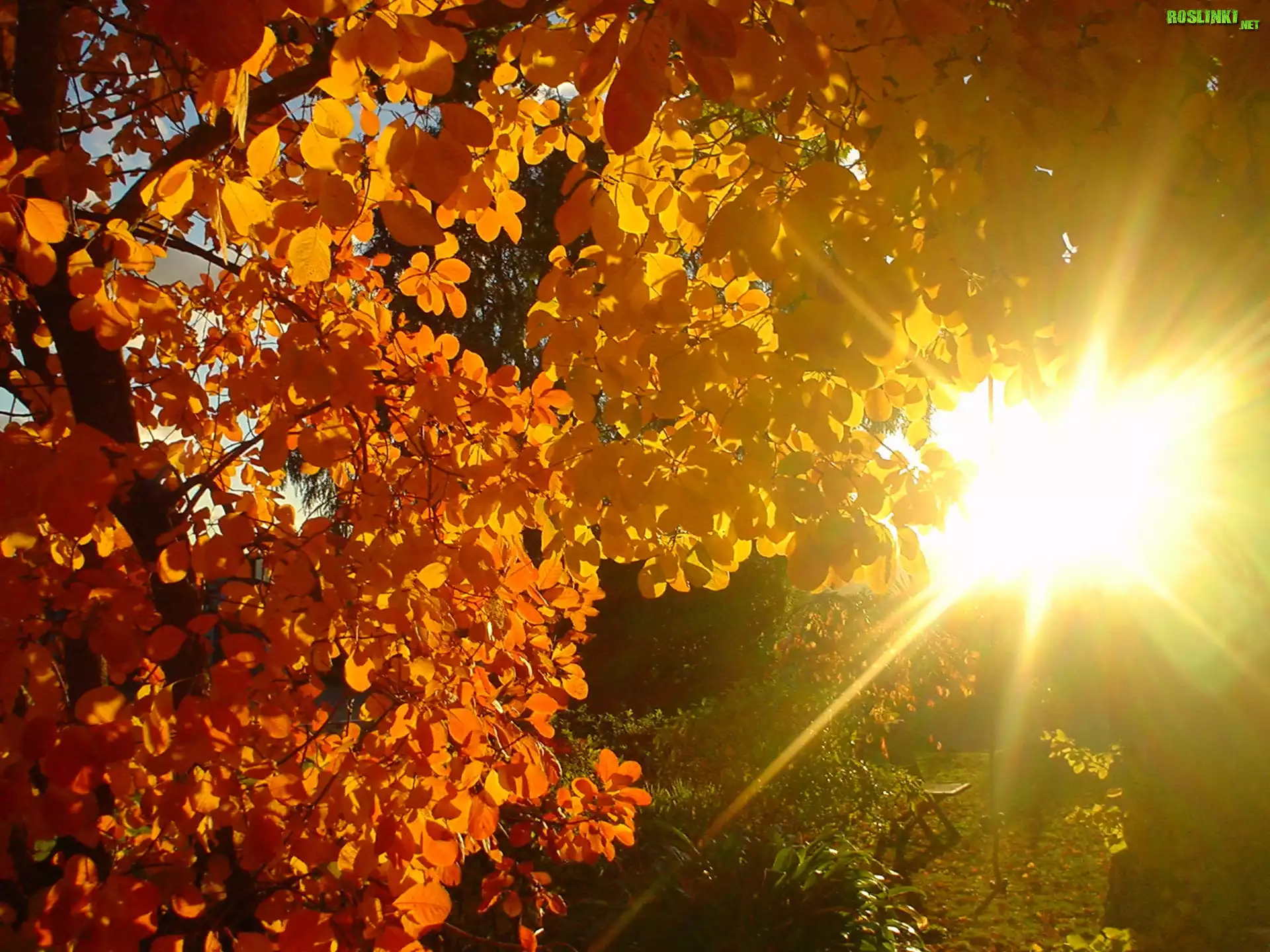Rośliny: Drzewa, Jesień, Ławeczka, Przebijające, Światło