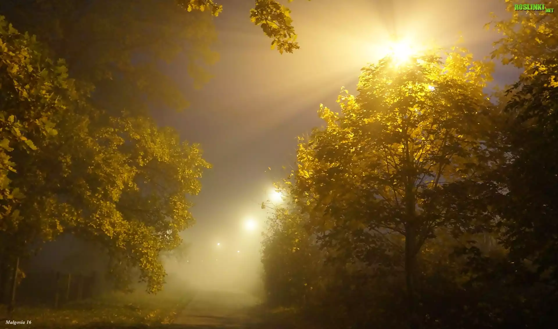 Rośliny: Drzewa, Noc, Mgła, Przebijające Światło