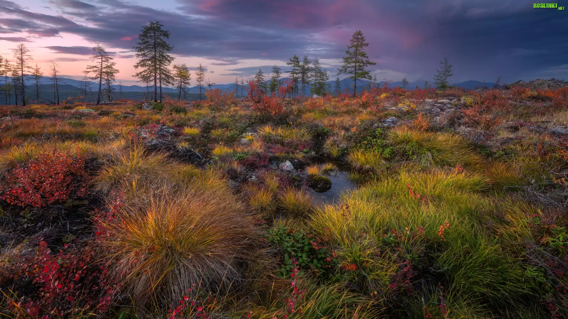 Rośliny: Rosja, Kołyma, Jesień, Drzewa, Trawa, Roślinność