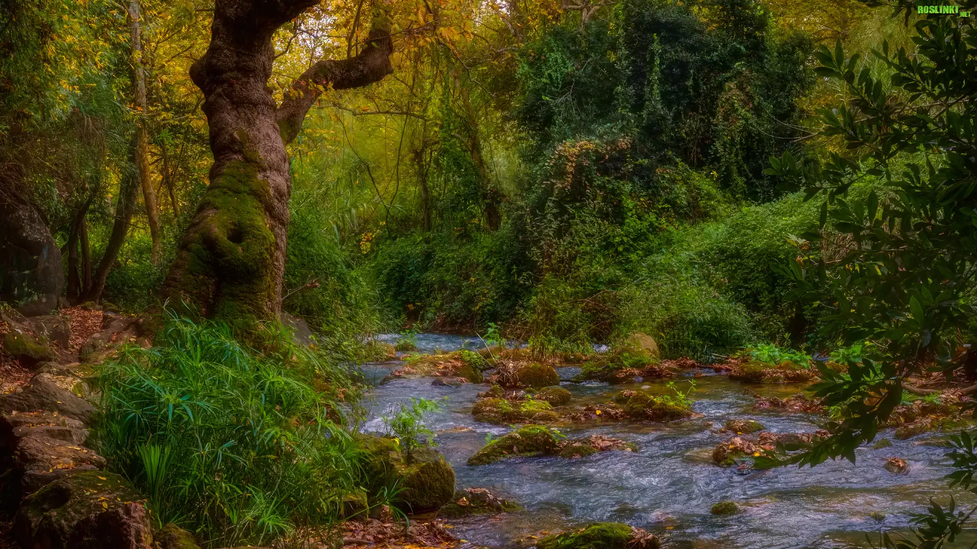 Rośliny: Las, Drzewa, Roślinność, Strumień, Kamienie