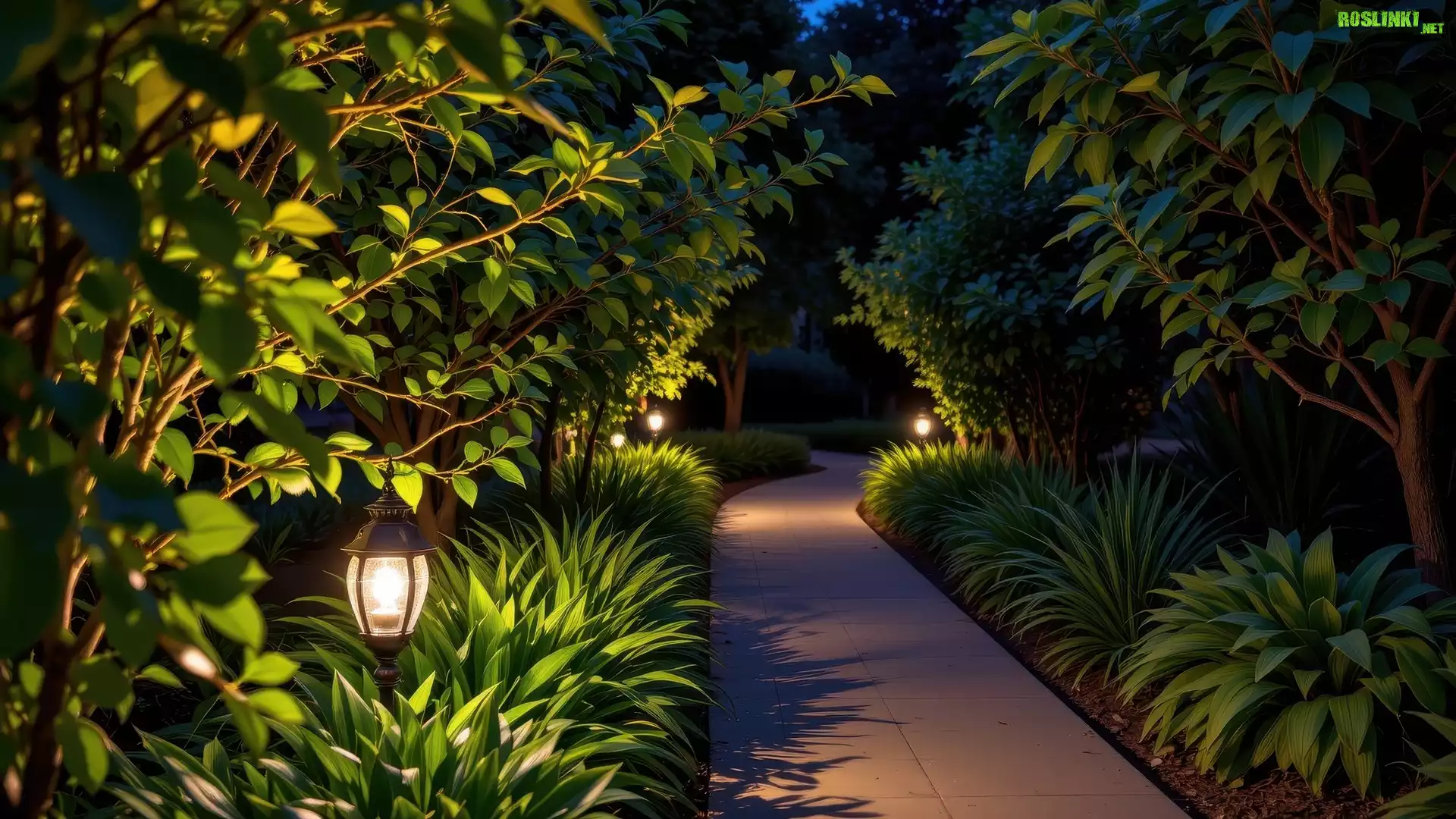 Rośliny: Ogród, Drzewa, Rośliny, Latarnie, Chodnik