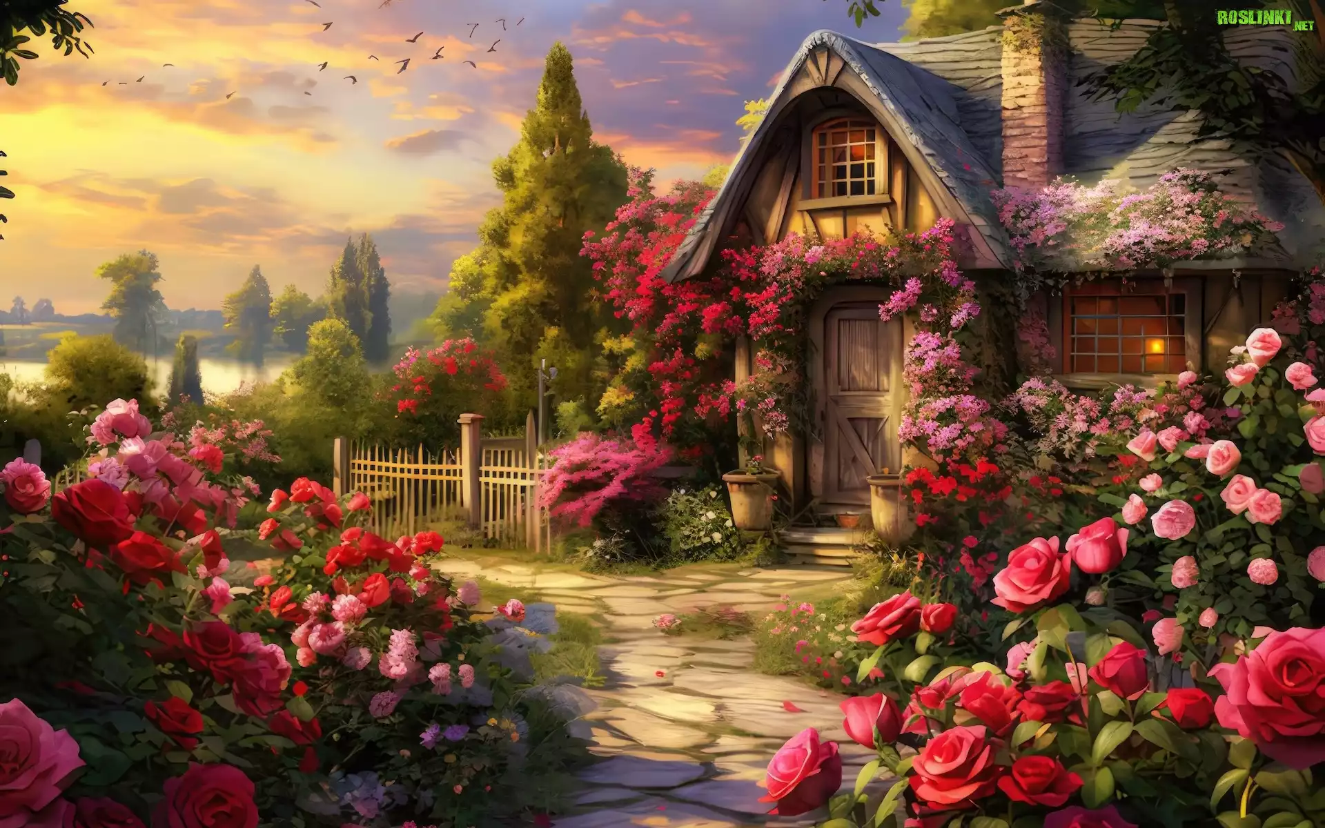 Rośliny: Grafika, Dom, Ogród, Drzewa, Kwiaty, Róże