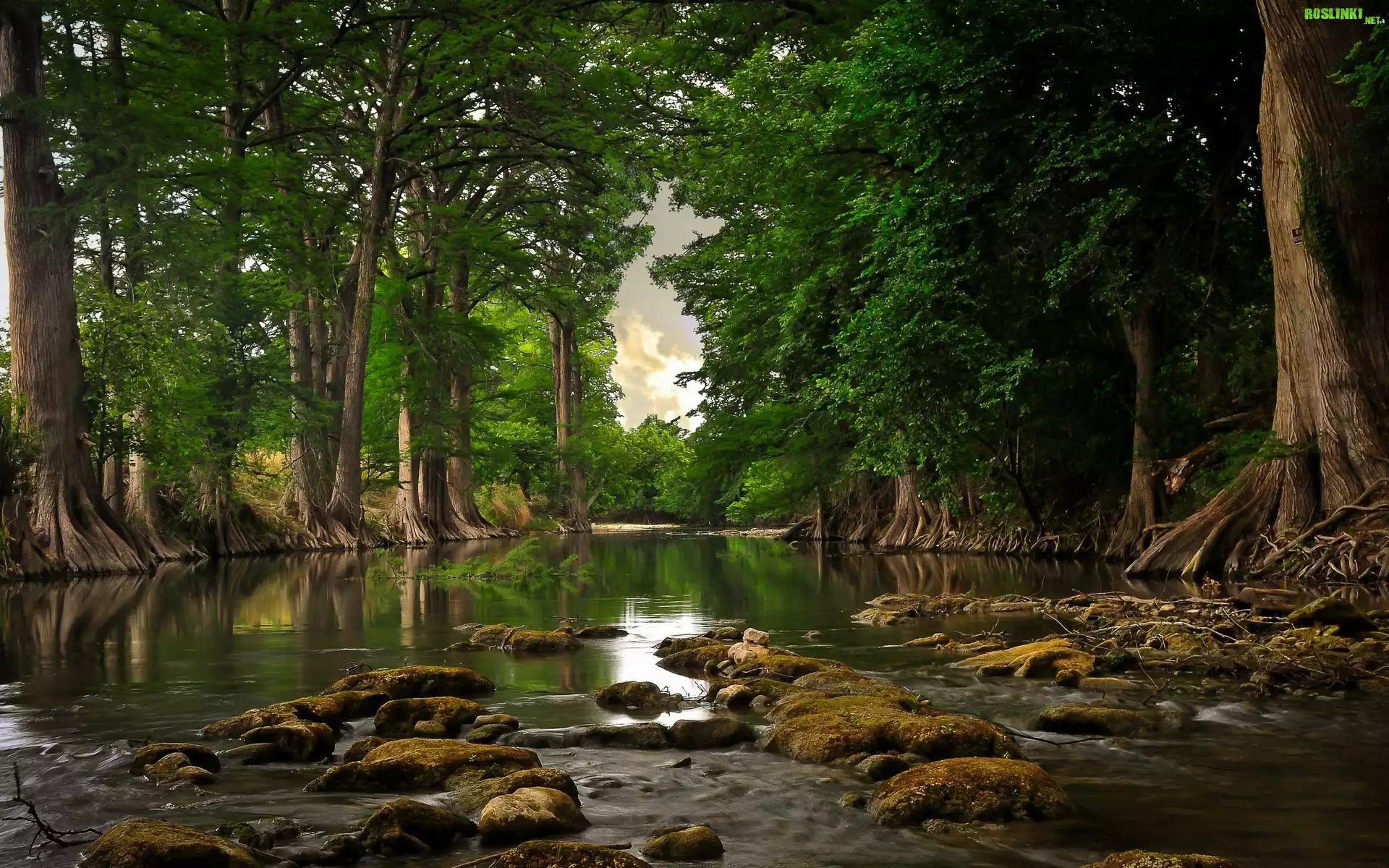 Rośliny: Drzewa, Korzenie, Rzeczka, Mech