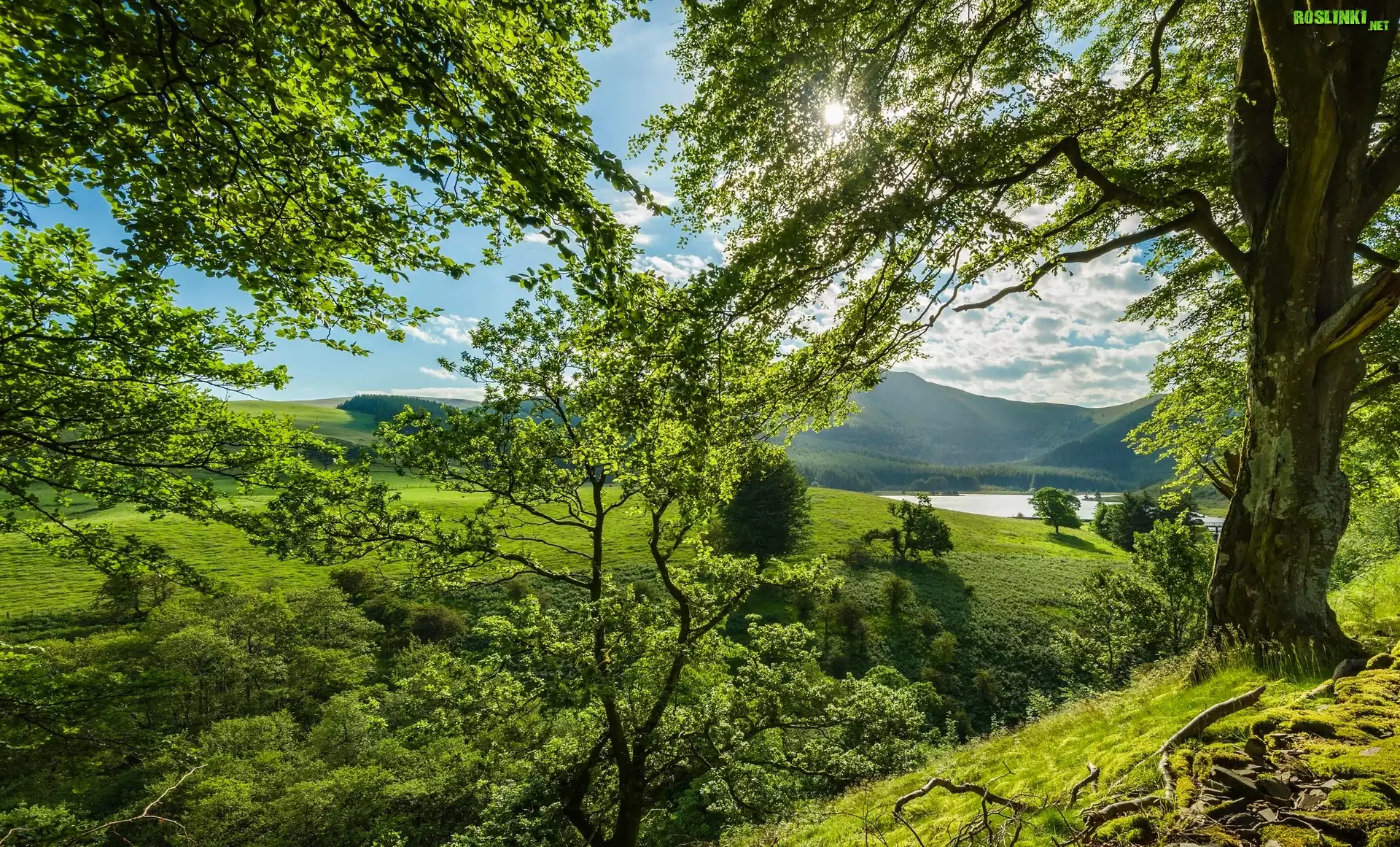 Rośliny: Drzewa, Słońce, Dolina, Rzeka, Góry