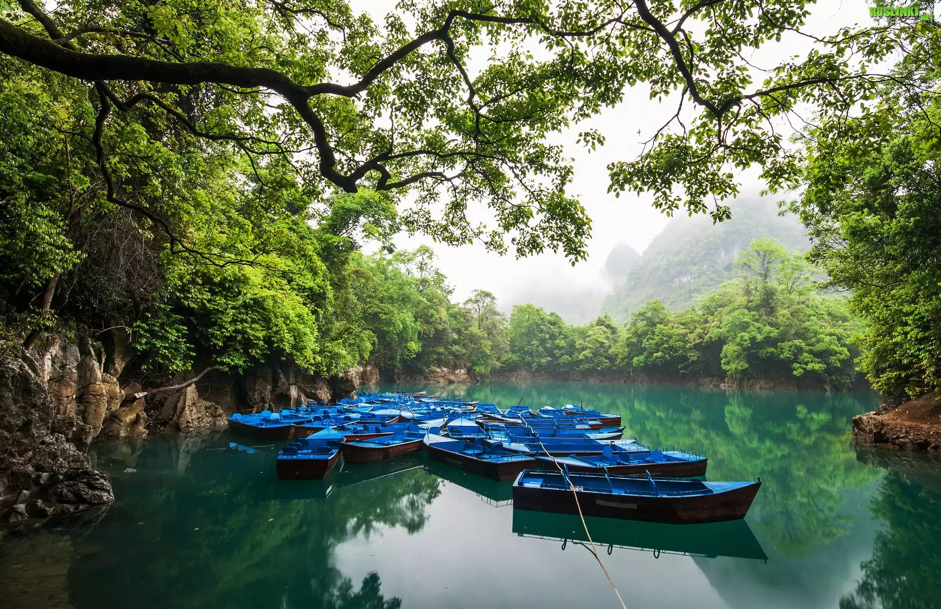 Rośliny: Łódki, Rzeka, Las, Drzewa, Góry
