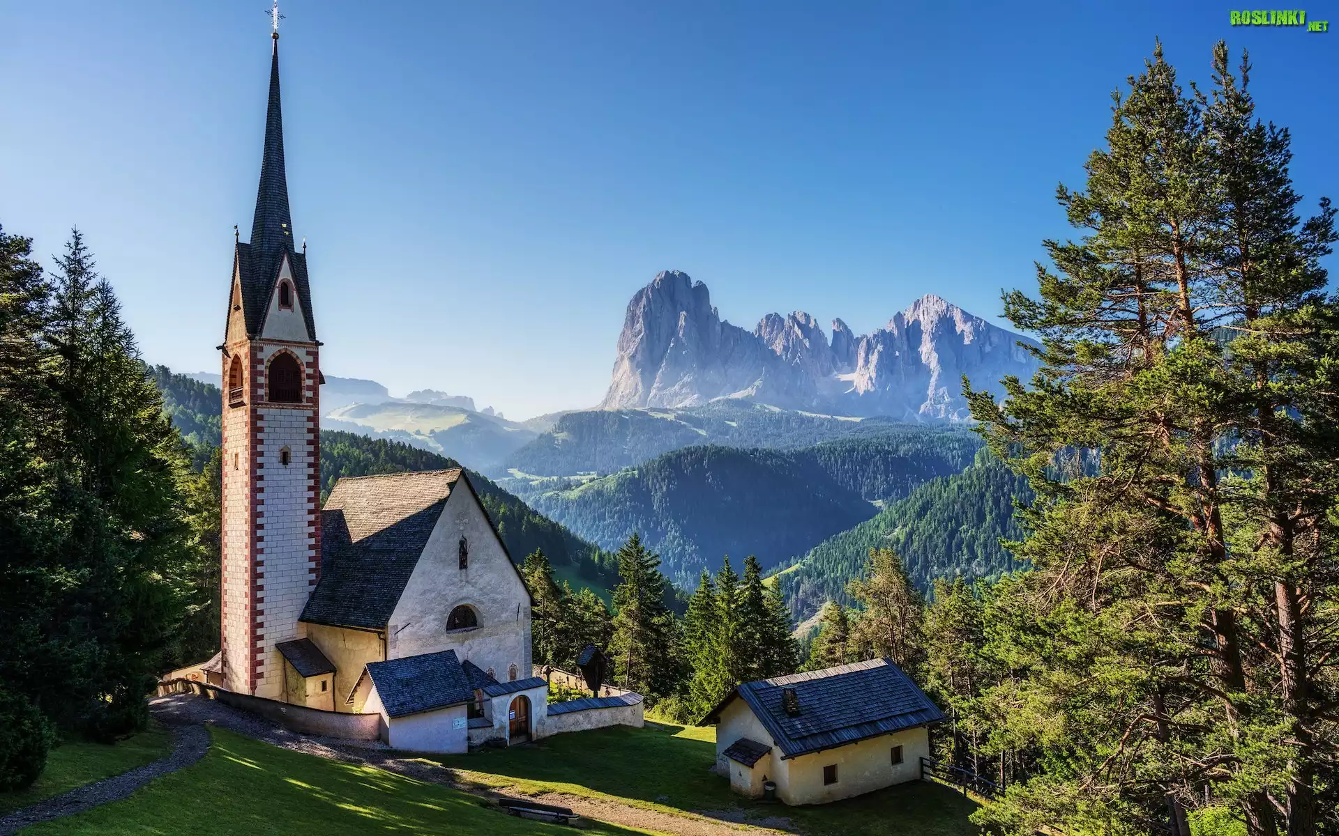 Rośliny: Włochy, Góry, Sassolungo, Dolomity, Kościół, Św Jakuba, Drzewa