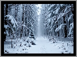 Zima, Zaśnieżona, Ścieżka, Drzewa, Las, Grafika AI