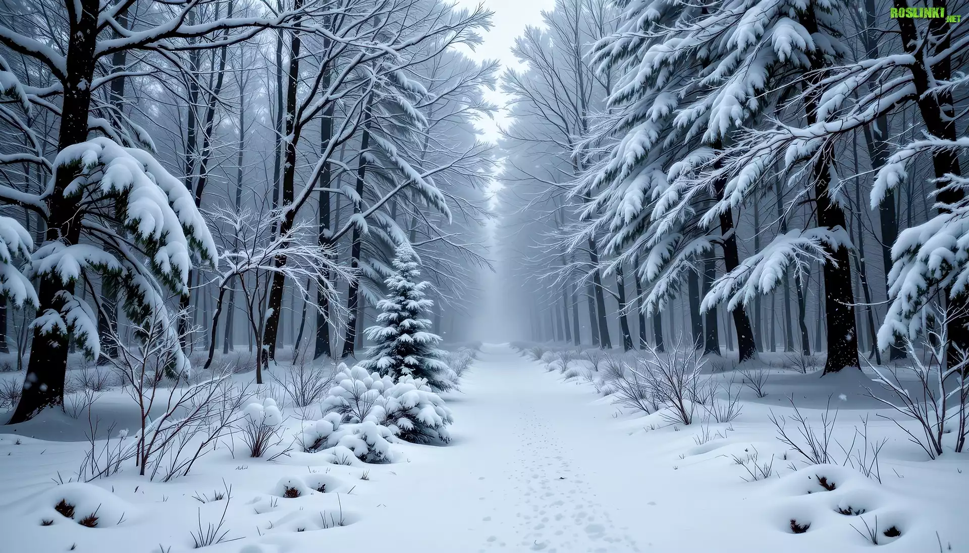 Rośliny: Zima, Zaśnieżona, Ścieżka, Drzewa, Las, Grafika AI