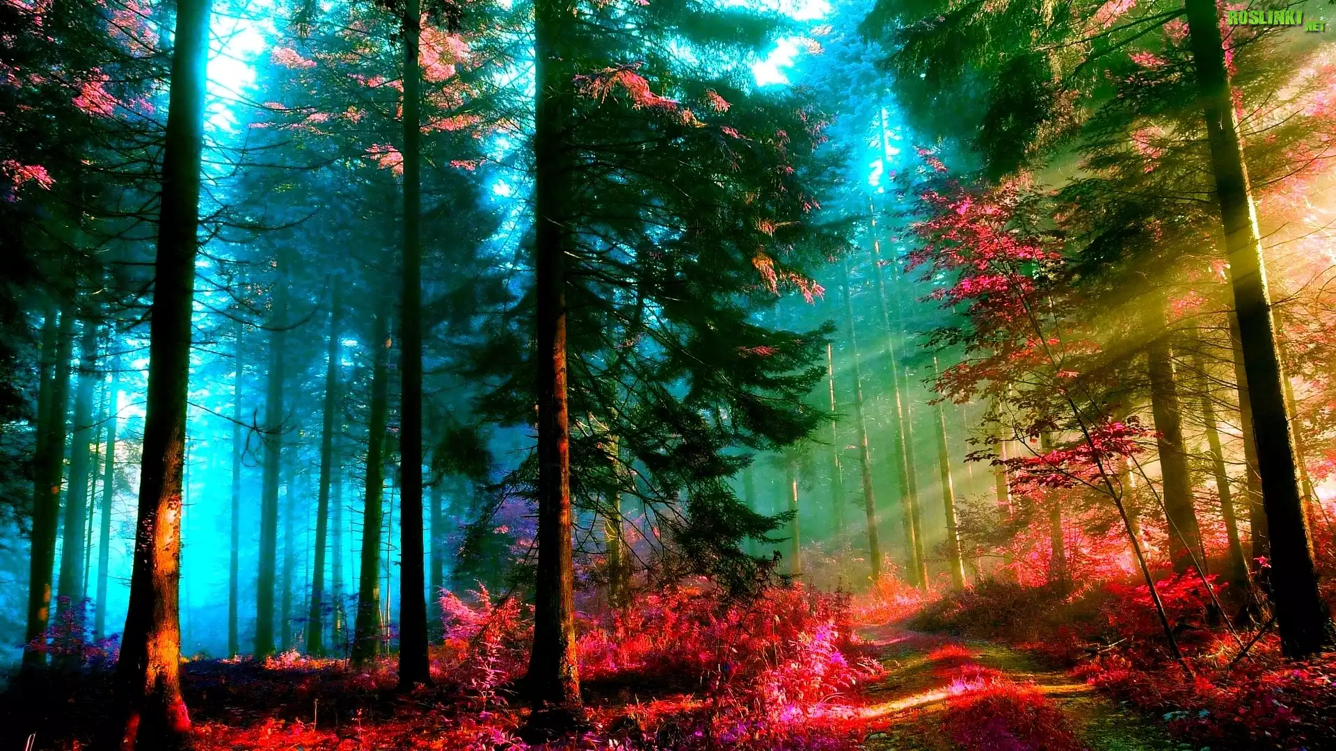 Rośliny: Drzewa, Kolorowe, Liście, Promienie, Słońca, Las