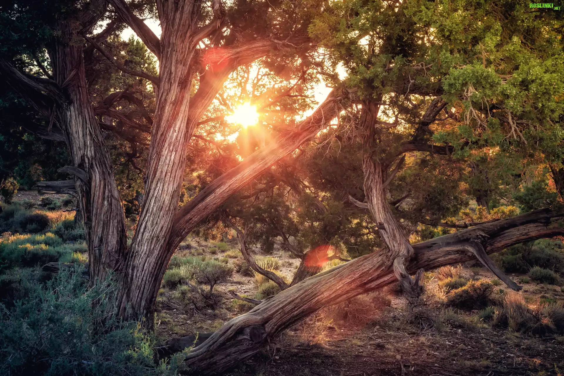 Rośliny: Drzewa, Konary, Promienie słońca, Las