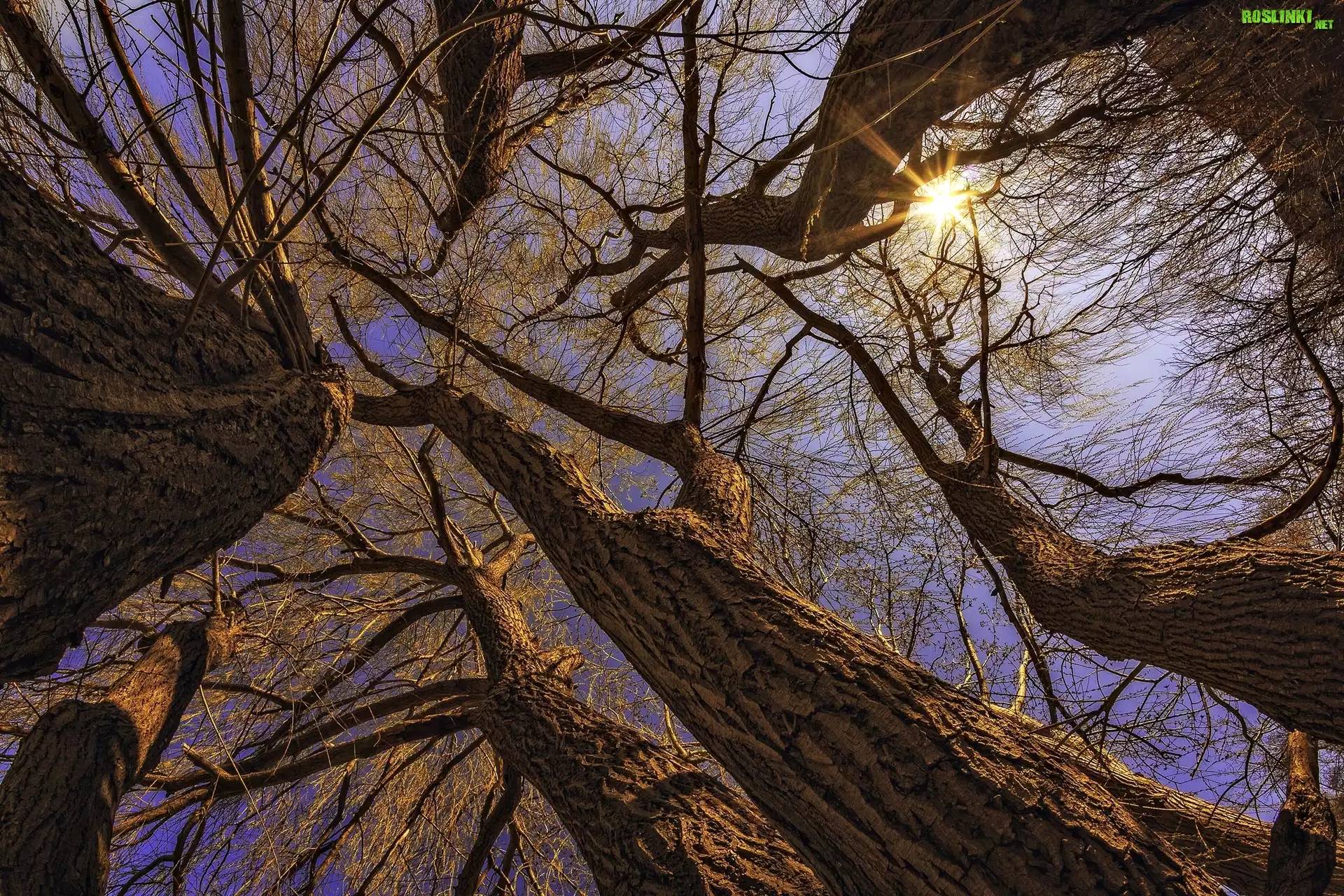 Rośliny: Drzewa, Niebo, Promienie Słońca, Jesień