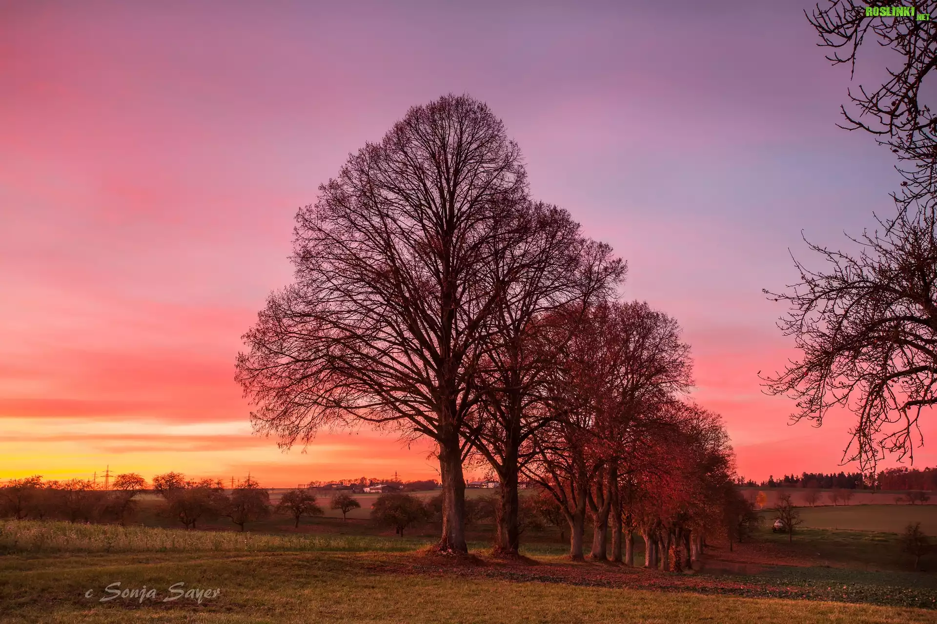 Rośliny: Drzewa, Zachód słońca, Lipy