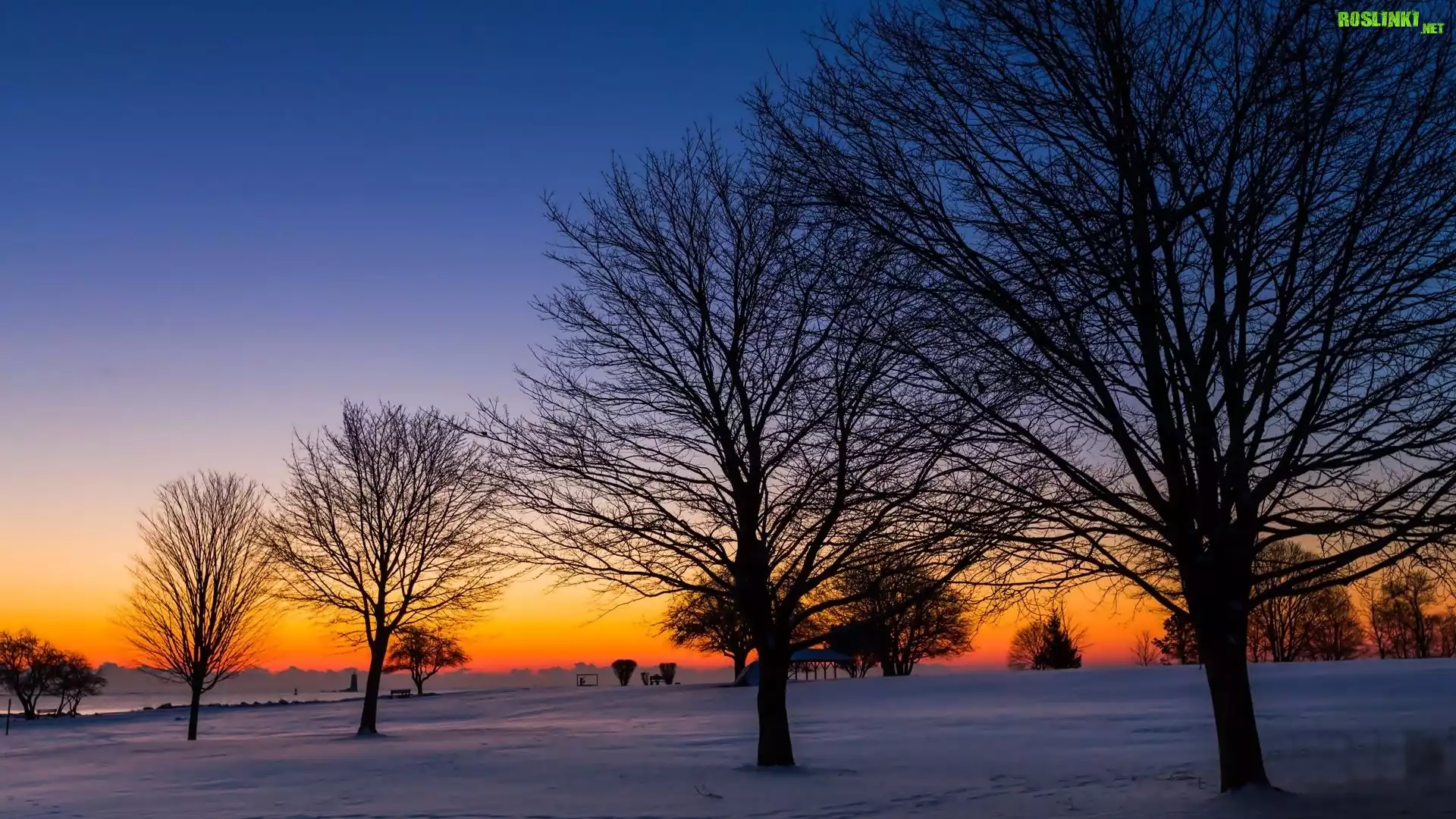 Rośliny: Drzewa, Pola, Zachód, Słońca, Zima