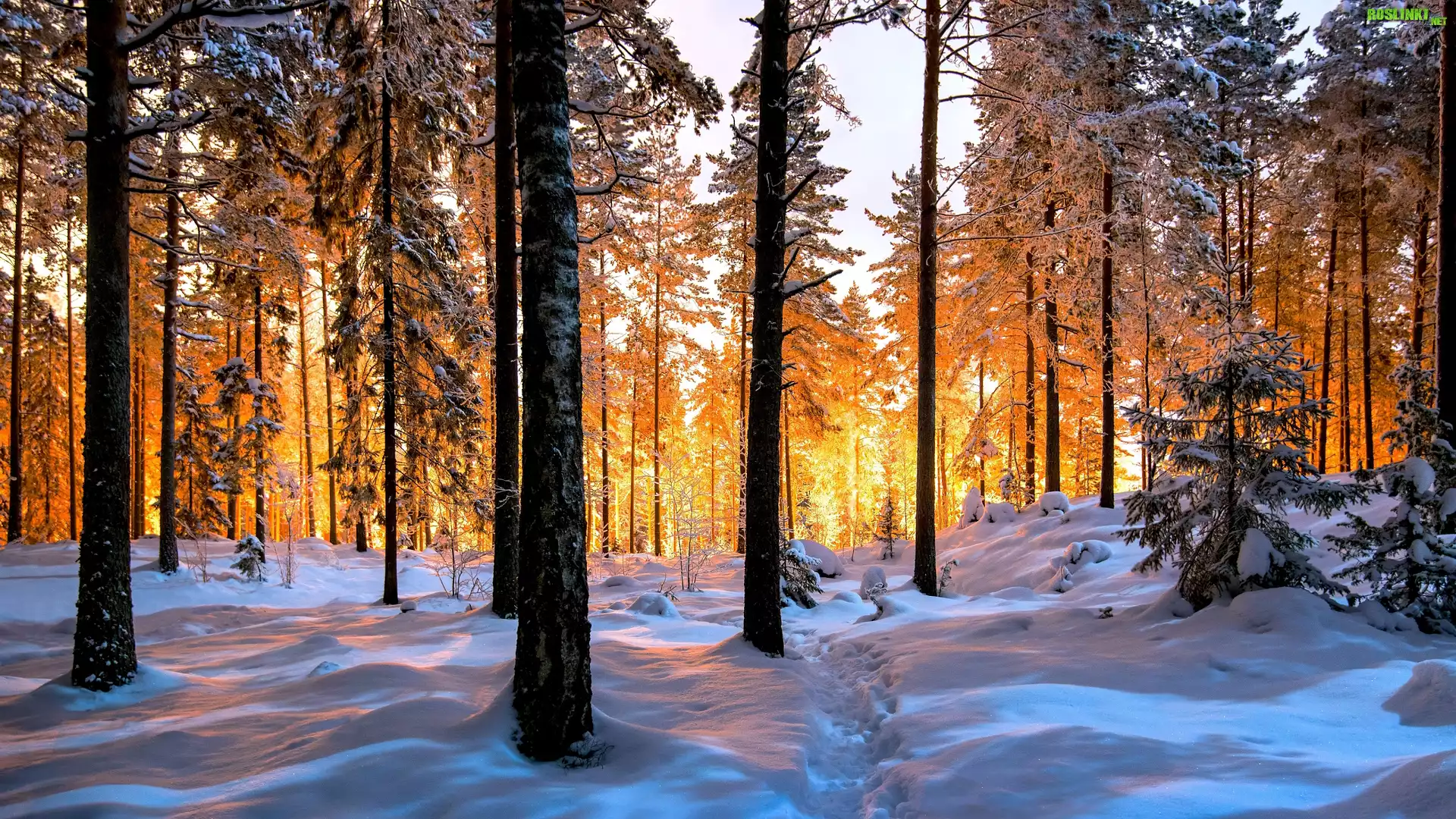 Rośliny: Zima, Las, Ośnieżone, Drzewa, Światło, Słoneczne