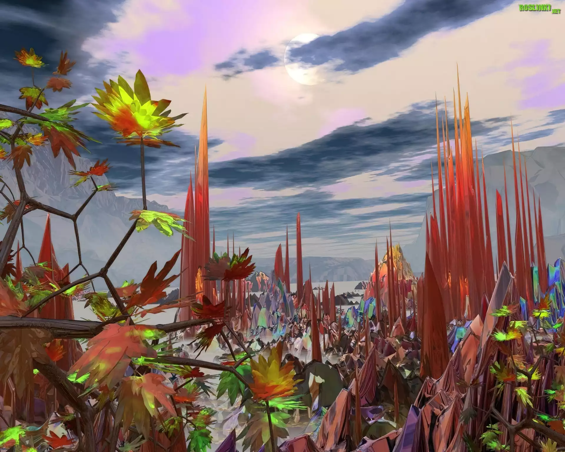 Rośliny: Drzewa, Liście, Spiczaste, Góry