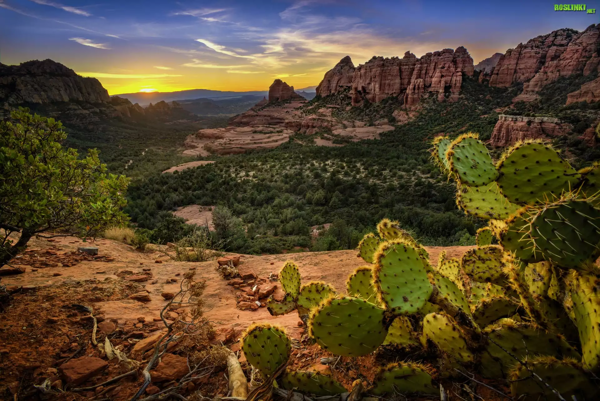 Rośliny: Stany Zjednoczone, Stan Arizona, Sedona, Góry, Skały, Kaktus, Drzewa