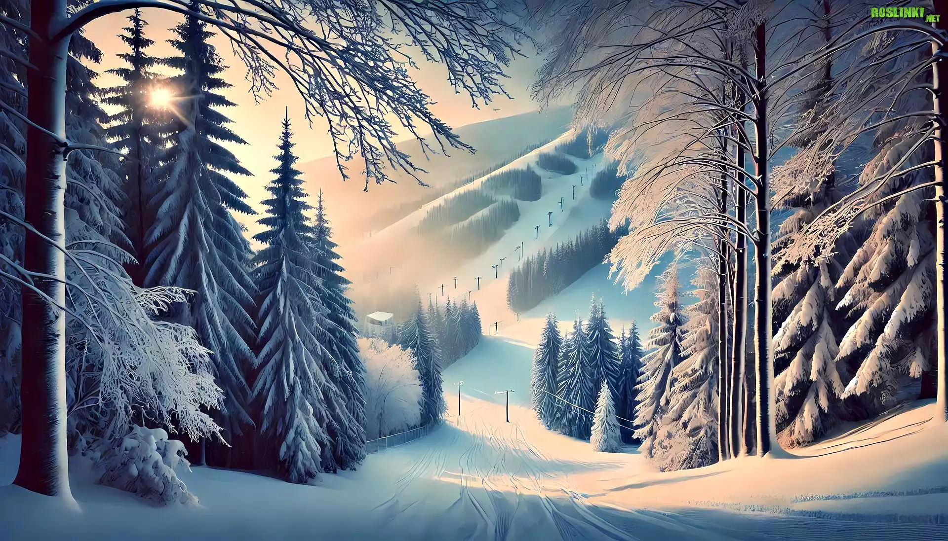 Rośliny: Zima, Drzewa, Stok, Las, Grafika