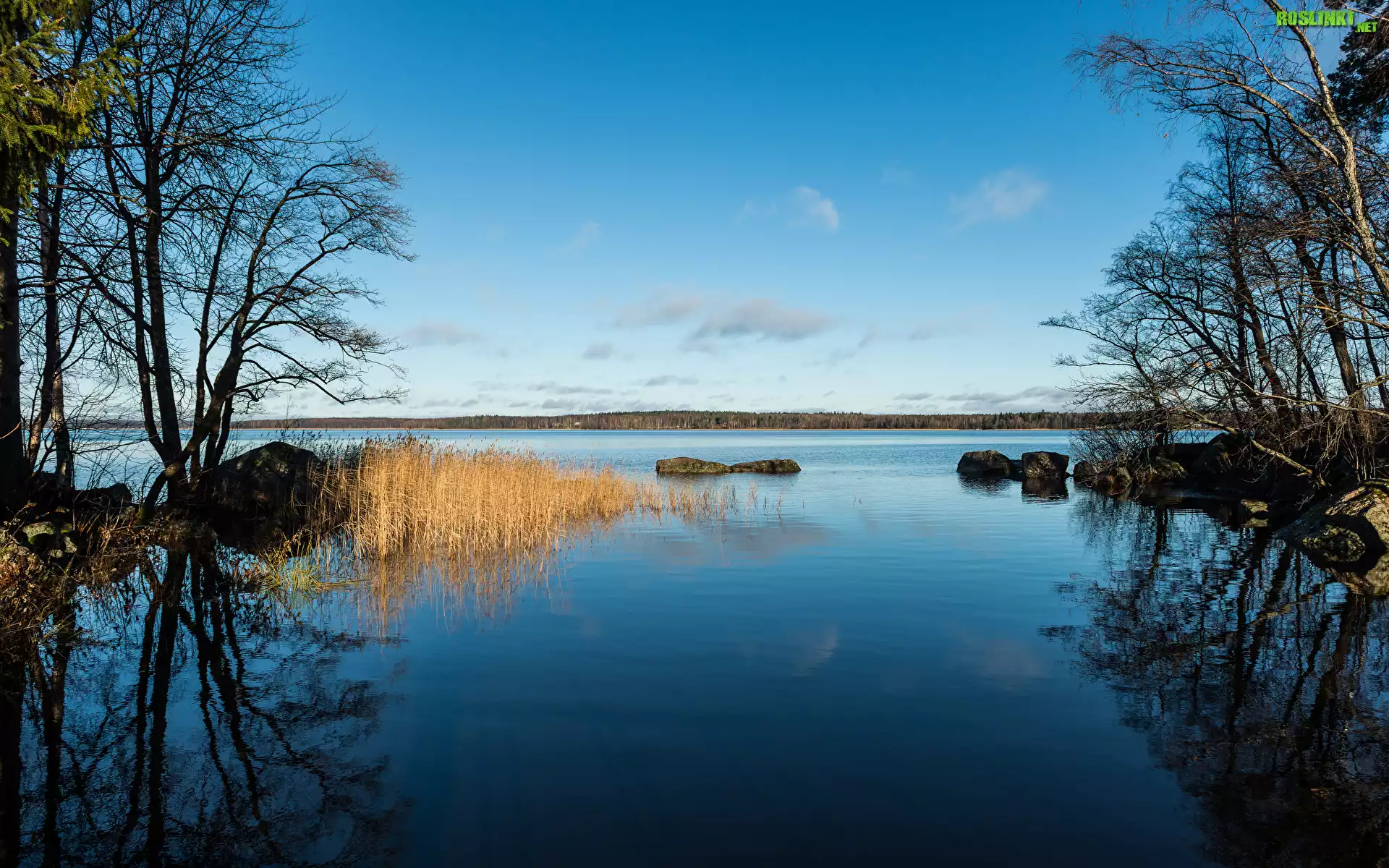 Rośliny: Drzewa, Jezioro, Trawy, Szuwary, Niebo
