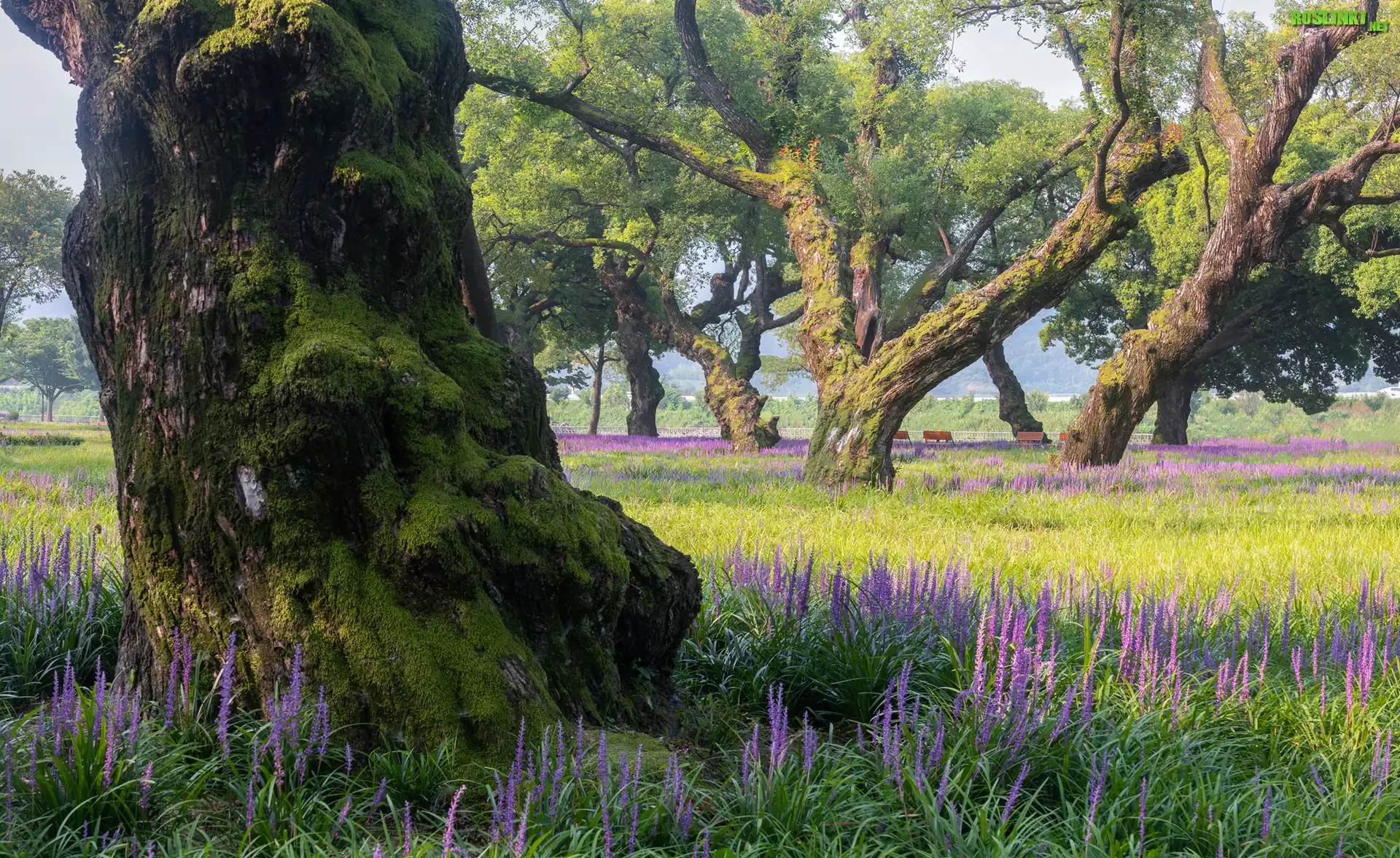 Rośliny: Drzewa, Fioletowe, Kwiaty, Trawa, Park