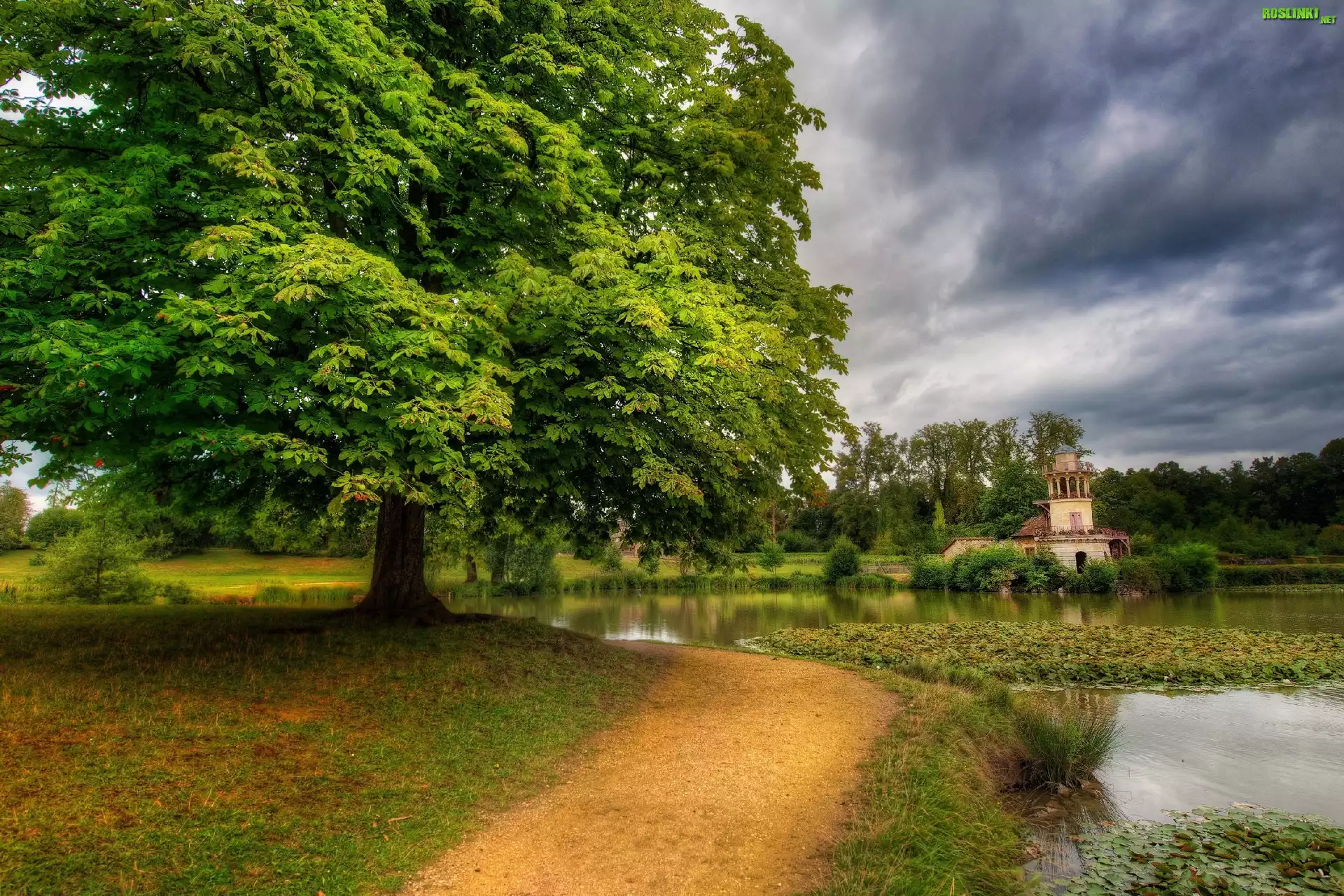 Rośliny: Drzewa, Park, Staw, Lilie Wodne, Ścieżka