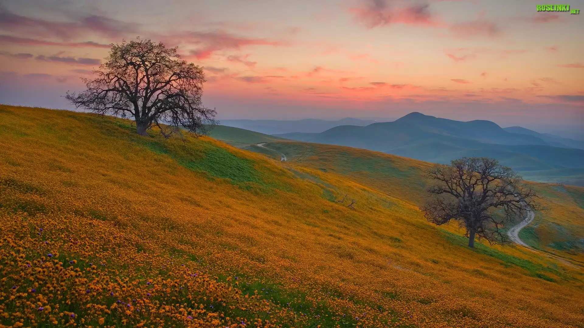 Rośliny: Wzgórze, Drzewa, Łąka