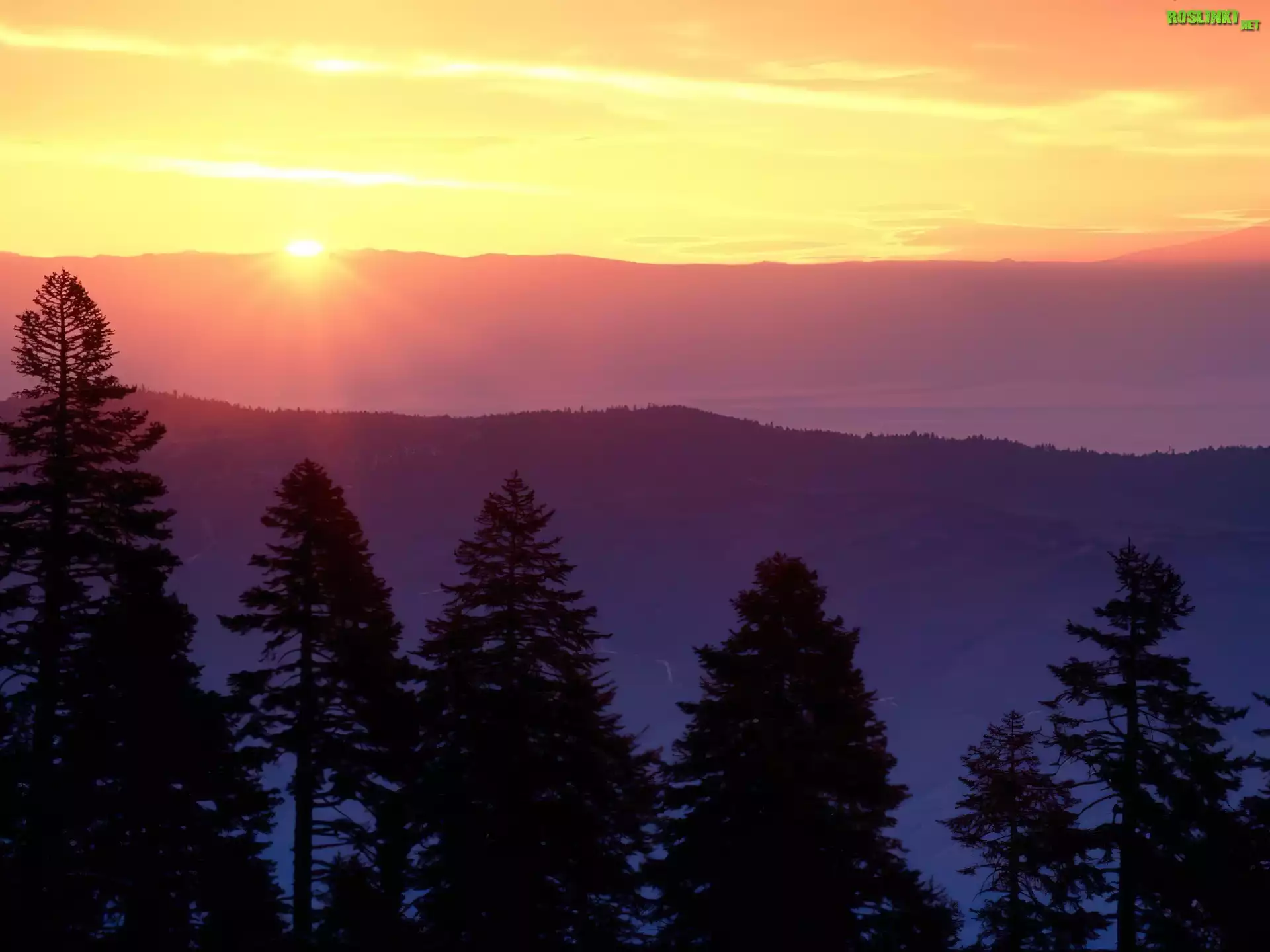 Rośliny: Drzewa, Góry, Zachód Słońca