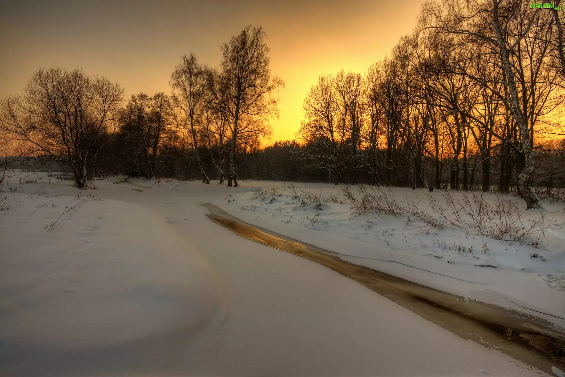 Rośliny: Drzewa, Potok, Zachód, Słońca